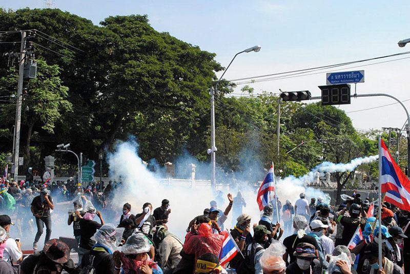 สถานการณ์การเมืองที่ขมวดเกลียวขัดแย้งระหว่าง 2 ขั้วอำนาจมากขึ้นเรื่อยๆ ก่อนจะถึงจุดแตกหักเมื่อพรรคเพื่อไทยอาศัยเสียงข้างมากของคณะกรรมาธิการแก้ไขเนื้อหาร่าง พ.ร.บ.นิรโทษกรรม ฉบับของนายวรชัย เหมะ ส.ส.สมุทรปราการ พรรคเพื่อไทย มาตรา 3 นิรโทษกรรมทุกกลุ่ม รวมทั้งแกนนำด้วย หรือที่เรียกขานว่า “นิรโทษกรรมสุดซอย” ผ่านวาระ 2-3 สภาผู้แทนราษฎร ตอนเช้ามืดวันที่ 1 พ.ย. ก่อนจะเสนอเข้าที่ประชุมวุฒิสภาขั้นต่อไป ทำให้นายสุเทพ เทือกสุบรรณ ส.ส.สุราษฎร์ธานี พรรคประชาธิปัตย์ พร้อมพวก จัดชุมนุมใหญ่ที่สถานีรถไฟสามเสนวันที่ 31 ต.ค. ยกระดับการชุมนุมเรียกร้องให้รัฐบาลถอนร่าง พ.ร.บ.ดังกล่าว และร่วมกับประชาชนเป่านกหวีดต้านกฎหมายสุดซอยจนกว่าจะชนะวันที่ 4 พ.ย. นายสุเทพนำมวลชนเคลื่อนไปปักหลักที่บริเวณอนุสาวรีย์ประชาธิปไตย ถนนราชดำเนินกลาง กลายเป็นม็อบขนาดใหญ่ หรือ “มวลมหาประชาชน” จนรัฐบาลมีมติถอนร่าง พ.ร.บ.นิรโทษกรรม 6 ฉบับรวด เมื่อวันที่ 7 พ.ย. หวังให้ม็อบยุติการชุมนุม และเมื่อวันที่ 11 พ.ย. ที่ประชุมวุฒิสภามีมติเป็นเอกฉันท์ไม่รับร่าง พ.ร.บ.นิรโทษกรรม จึงถูกตีตกไปโดยปริยาย แต่ม็อบจุดติดแล้วได้ยกระดับขับไล่รัฐบาลแทน โดยยึดแนวทางอหิงสาและใช้วิธีอารยะขัดขืน วันที่ 27 พ.ย. นายสุเทพนำขบวนยึดศูนย์ราชการฯ ถนนแจ้งวัฒนะ เพื่อโค่นระบอบทักษิณ โดยตั้งชื่อว่าคณะกรรมการประชาชนเพื่อการเปลี่ยนแปลงการปกครองระบอบประชาธิปไตยที่สมบูรณ์ โดยมีพระมหากษัตริย์ทรงเป็นประมุข (กปปส.) มีแนวทางให้ปฏิรูปประเทศอย่างขนานใหญ่ ขณะที่แนวร่วมประชาธิปไตยต่อสู้เผด็จการแห่งชาติ (นปช.) ระดมพลชุมนุมที่สนามราชมังคลากีฬาสถานคืนวันที่ 30 พ.ย. เกิดการปะทะกับกลุ่มม็อบนักศึกษารามคำแหงบางส่วน กลายเป็นจลาจลย่อมๆ มีผู้เสียชีวิต 4 ศพ บาดเจ็บกว่า 200 คน มีการปะทะบริเวณรอบทำเนียบรัฐบาลและกองบัญชาการตำรวจนครบาล ตำรวจใช้แก๊สน้ำตาสกัด หวิดจะเกิดการเสียเลือดเนื้อครั้งใหญ่ ในที่สุดรัฐบาลยอมถอยเปิดทางให้ม็อบเข้าทำเนียบฯและ บช.น. สถานการณ์จึงคลายความเขม็งเกลียวลง แต่ม็อบ กปปส.ก็ยังดำเนินการชุมนุมขับไล่ รัฐบาลอย่างไม่ลดละ พรรคประชาธิปัตย์ร่วมกดดันอีกทางด้วยการลาออกจาก ส.ส.ทั้งพรรค ต่อมาวันที่ 9 ธ.ค.รัฐบาล น.ส.ยิ่งลักษณ์ ชินวัตร ประกาศยุบสภา ให้มีการเลือกตั้งวันที่ 2 ก.พ.2557 แต่ม็อบ กปปส. ยืนยันต้องปฏิรูปการเมือง และจัดตั้งสภาประชาชนก่อนจะจัดการเลือกตั้งในภายหลัง พร้อมประกาศระดมพลปิด “กรุงเทพฯ” เพื่อล้มวันเลือกตั้ง 2 ก.พ.และล้างบาง “ระบอบทักษิณ” ให้สิ้นซาก.