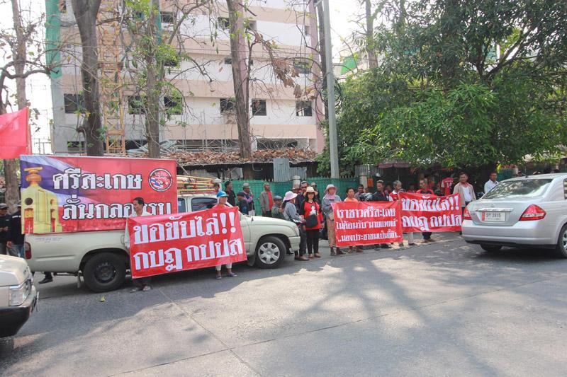 เวลา 10.00 น.วันที่ 11 มี.ค.57 ที่บริเวณหน้าถนนหน้า รพ.ศรีสะเกษ อ.เมือง จ.ศรีสะเกษ กลุ่มคนเสื้อแดงในจังหวัดศรีสะเกษ นำโดย นางอัญชลี เทพวงษา เลขานุการ นปช.ศรีสะเกษ ได้รวมตัวมาขับไล่ นายณรงค์ สหเมธาพัฒน์ ปลัดกระทรวงสาธารณสุข หลังจากที่นายณรงค์ พร้อมคณะได้เดินทางมาประชุมติดตามรับฟังการปฏิบัติงานของส่วนราชการสังกัด กระทรวงสาธารณสุขในจังหวัดศรีสะเกษ โดยบรรยากาศกลุ่มคนเสื้อแดง ได้มีการเปิดเครื่องขยายเสียงพูดโจมตีของกลุ่ม กปปส.ที่นำโดยนายสุเทพ เทือกสุบรรณ การโจมตีมีแพทย์ เจ้าหน้าที่ในสังกัดกระทรวงสาธารณสุข ได้ออกมาเคลื่อนไหวคัดค้านรัฐบาลร่วมกับกลุ่ม กปปส. โดยพูดทั้งภาษาไทย และภาษาเขมร พร้อมทั้งได้มีป้ายเขียนโจมตีว่าแพทย์เอาเปรียบประชาชนด้วย