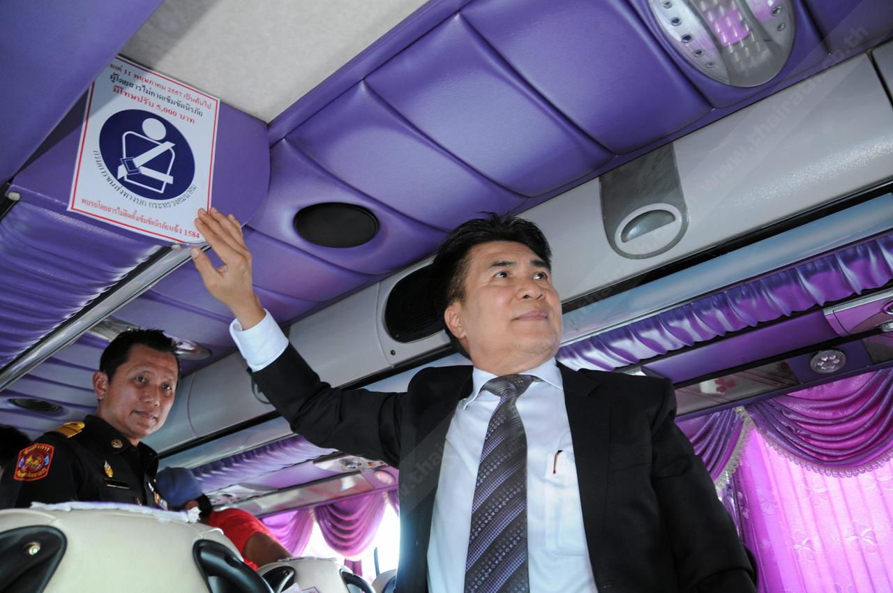 อัฌษไธค์-รถโดยสารประจำทางที่วิ่งภายในจังหวัด เช่น รถเมล์ที่วิ่งในกรุงเทพฯ และรถโดยสารที่วิ่งภายในจังหวัดตนเอง รวมถึงรถสองแถว กฎหมายนี้ยังไม่ได้บังคับ เพราะรถประเภทดังกล่าวกำหนดให้ผู้โดยสารสามารถยืนบนรถโดยสารได้ แต่รถโดยสารสาธารณะ ที่กำหนดให้ติดตั้งเข็มขัดนิรภัย หากฝ่าฝืนอัตราโทษปรับ ไม่เกิน 50,000 บาท มีผลตั้งแต่วันที่ 1 เมษายนที่ผ่านมา