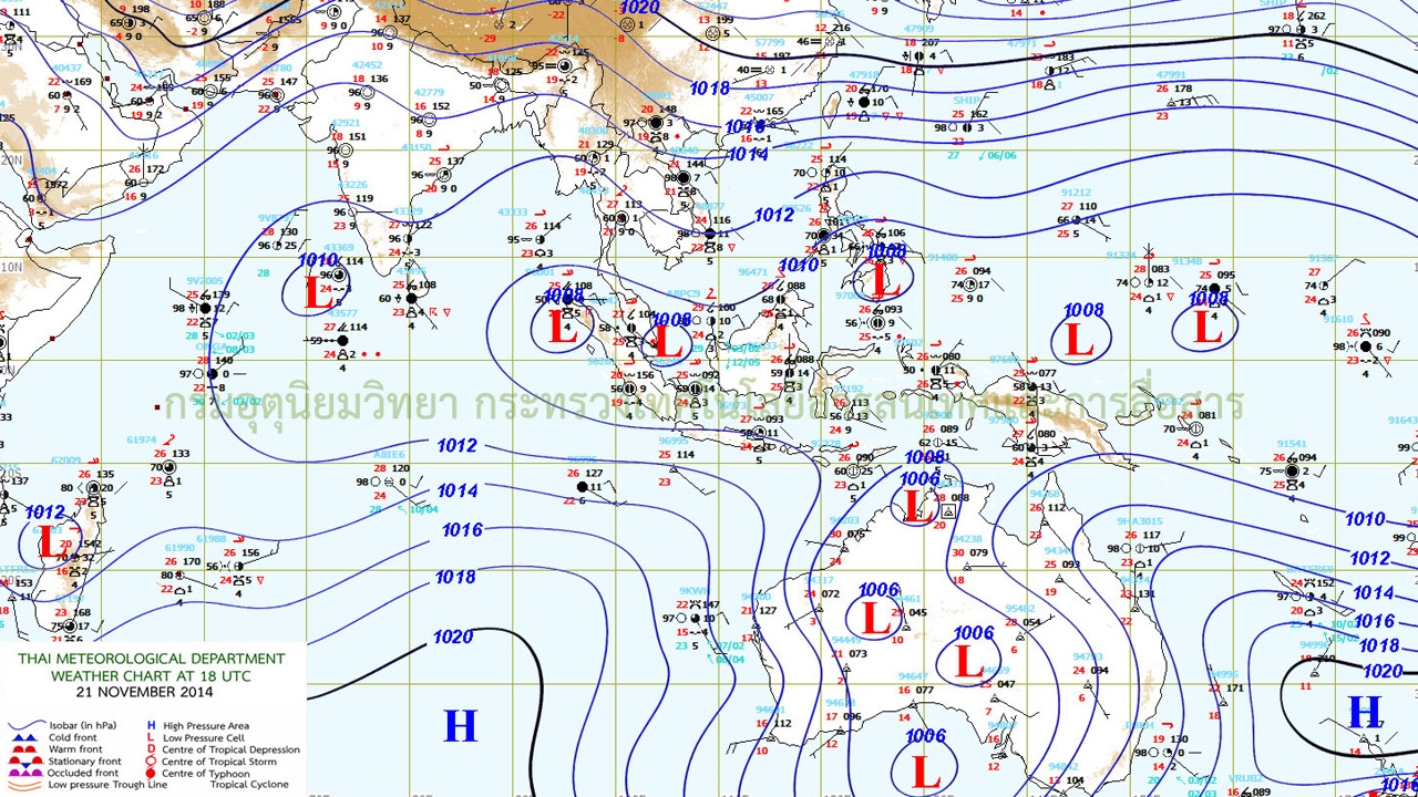 วันที่ 22 พ.ย. กรมอุตุนิยมวิทยา รายงานสภาพอากาศ ลักษณะอากาศทั่วไปเมื่อเวลา 04:00 น. บริเวณความกดอากาศสูงที่ปกคลุมประเทศไทยตอนบนมีกำลังอ่อนลง ทำให้บริเวณดังกล่าวจะมีอุณหภูมิสูงขึ้นเล็กน้อย แต่ยังคงทำให้มีอากาศเย็นกับมีหมอกในตอนเช้าและมีหมอกหนาในบางพื้นที่ ขอให้ประชาชนระมัดระวังอันตรายในการสัญจรผ่านบริเวณที่มีหมอกหนาไว้ด้วย สำหรับมรสุมตะวันออกเฉียงเหนือที่พัดปกคลุมอ่าวไทย และภาคใต้มีกำลังอ่อน ทำให้ภาคใต้มีฝนลดลง