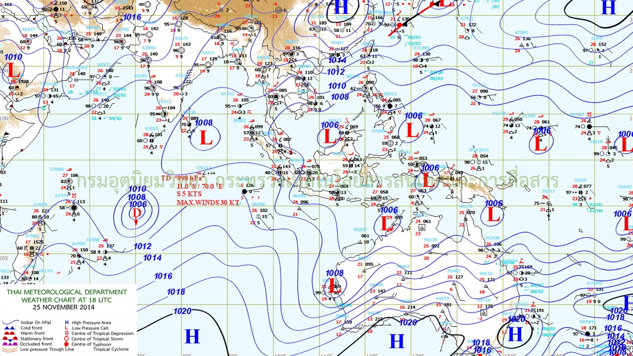 อนึ่ง บริเวณความกดอากาศสูงกำลังค่อนข้างแรงอีกระลอกหนึ่งจากประเทศจีน จะแผ่ลงมาปกคลุมถึงประเทศไทยตอนบนในช่วงวันที่ 1-2 ธันวาคม 2557