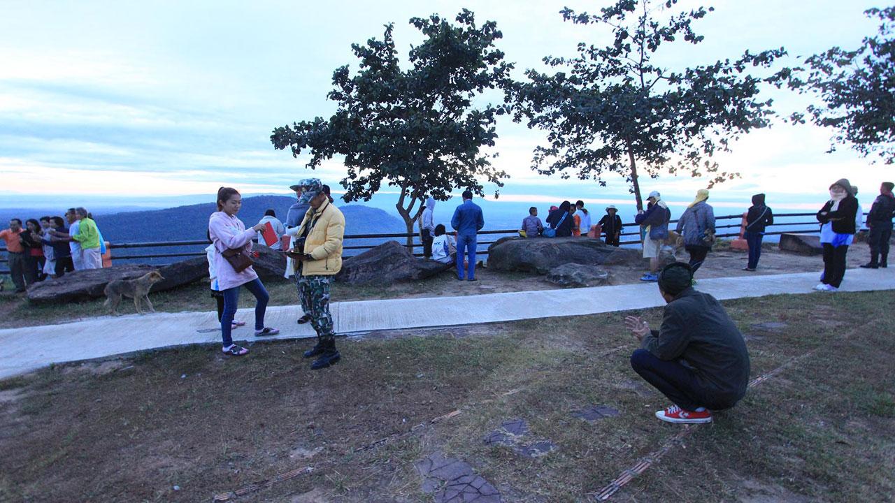 นักท่องเที่ยวทั้งไทยและเทศขึ้นผามออีแดง จ.ศรีสะเกษ โต้ลมหนาวและดูพระอาทิตย์ 3 แผ่นดินขึ้นฟ้าคึกคัก ด้าน จนท.ขยายเวลาเปิดด่านผามออีแดงเร็วขึ้นเป็น 05.30 น...