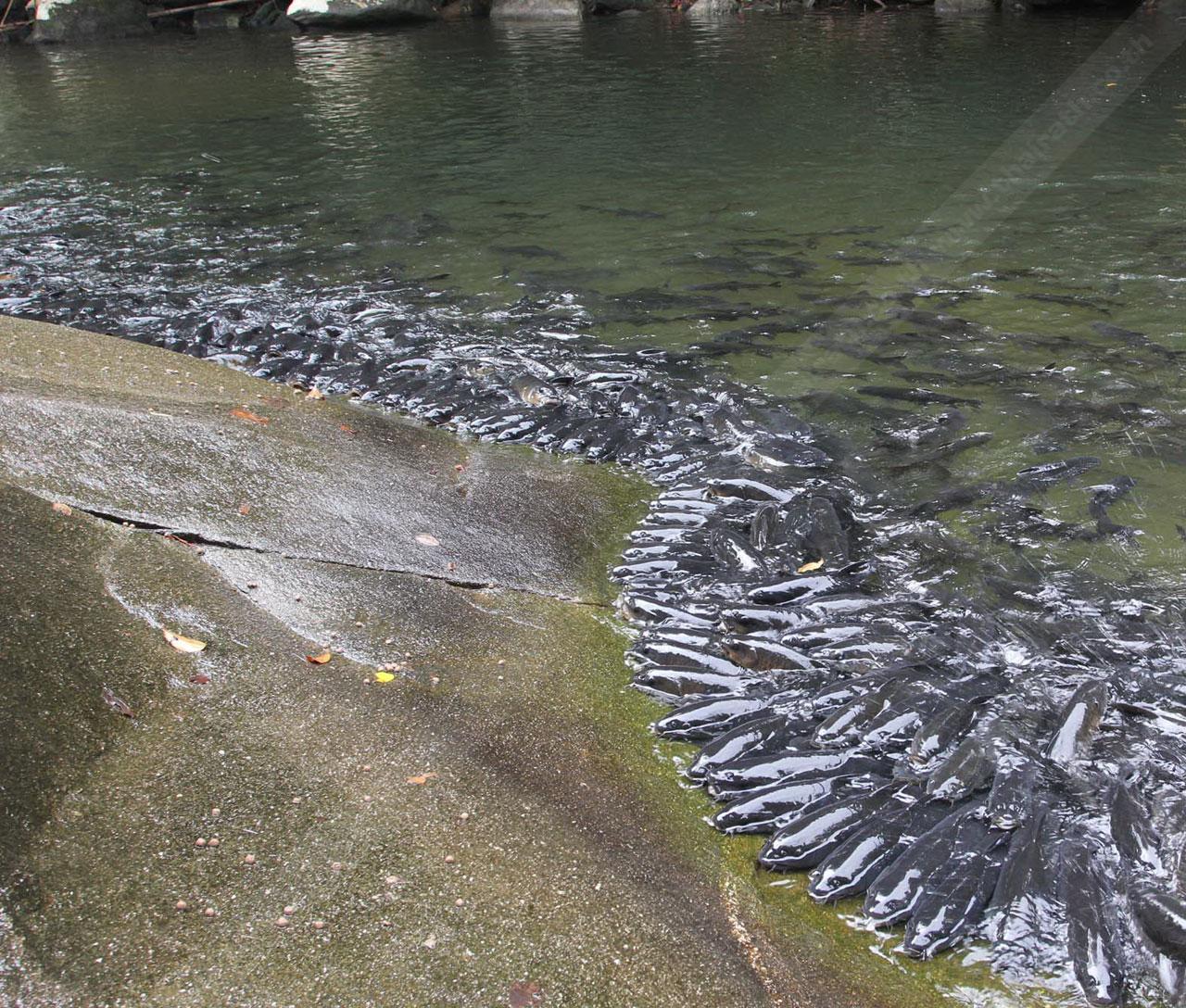 นายจิรศักดิ์ กล่าวต่อว่า เมื่อก่อนเวลานักท่องเที่ยวให้อาหารนั้น ปลาพลวงจะแย่งกัน