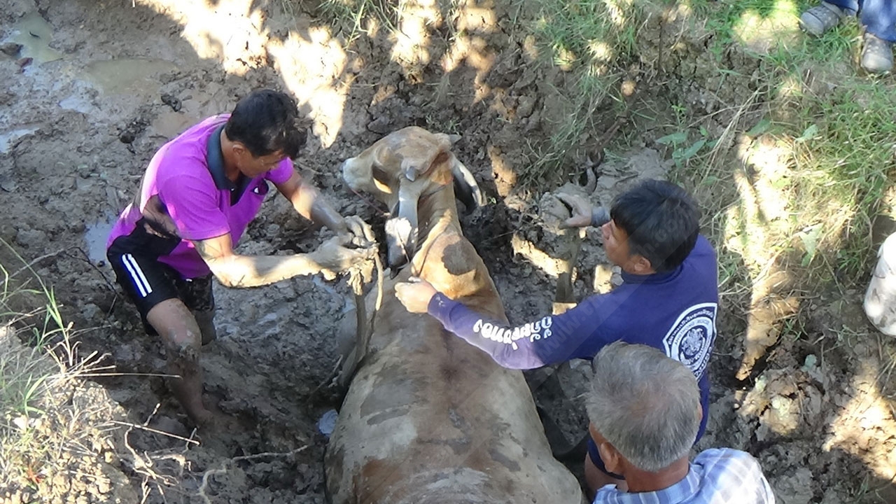 ด้านนายสุนัน เปิดเผยว่า ตนได้เลี้ยงวัวไว้ทั้งหมด 4 ตัว และเมื่อวานนั้นนางแดงได้หายไป ตนจึงได้ตามหาทั้งคืนแต่ไม่พบ และเมื่อเช้าที่ได้ปล่อยฝูงวัวกินหญ้าบริเวณดังกล่าวและได้ยินเสียงวัวร้องจึงเดินลงไปดูที่คูน้ำ เห็นวัวนางแดงติดหล่มอยู่ ไม่สามารถขึ้นมาได้จึงแจ้งเจ้าหน้าที่วีอาร์กู้ภัยให้การช่วยเหลือได้อย่างปลอดภัย โดยคาดว่านางแดงคงหิวน้ำและได้ลงไปดื่มกินในคูดังกล่าวและไม่สามารถขึ้นมาเองได้.