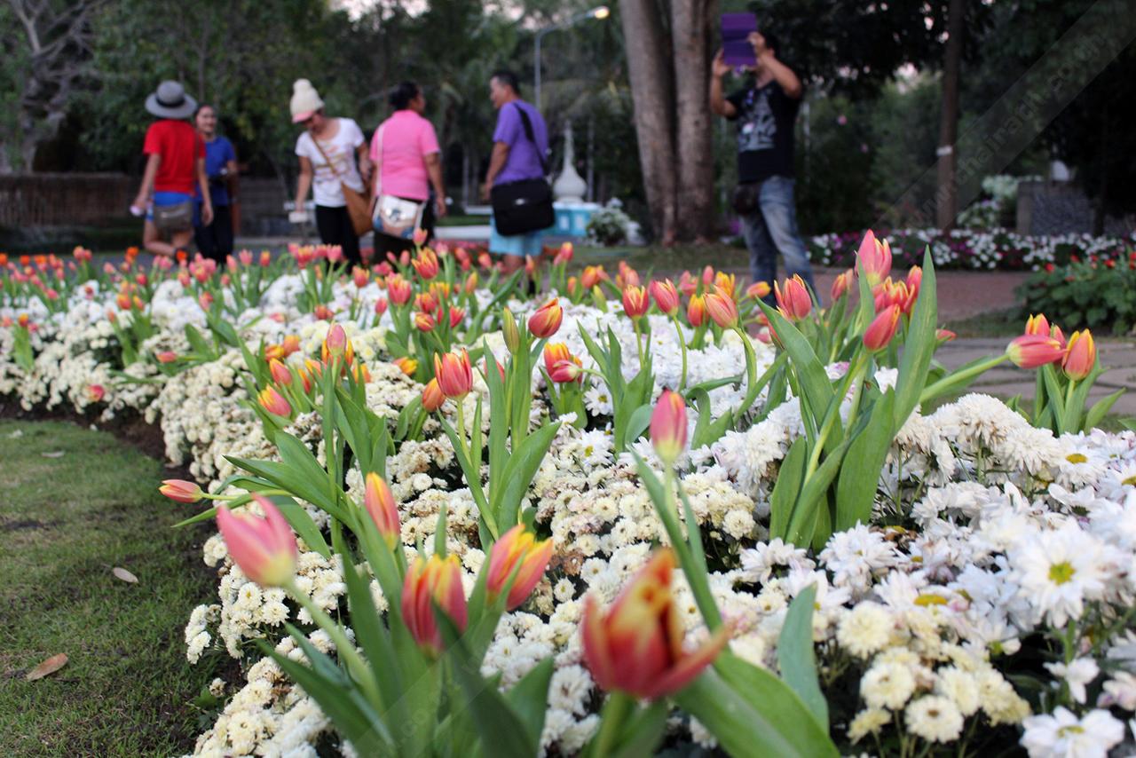 อยjางไรก็ตาม ดอกไม้ที่สร้างความสนใจและดึงดูดให้นักท่องเที่ยวมากันจำนวนมาก หนีไม่พ้นดอก ‘ทิวลิป’ หลากสีสัน ที่นำมาจัดแสดงกว่า2พันต้น และได้ออกดอกบานสะพรั่งพร้อมกัน ที่บริเวณสวนประเทศเนเธอร์แลนด์ ภายในอุทยานหลวงฯ สร้างความตื่นตาตื่นใจเป็นอยางมาก เพราะเป็นการบานครั้งแรกของฤดูหนาวนี้ที่เชียงใหม่ ทำให้นักท่องเที่ยวพากันมาถ่ายภาพความสวยงามนี้ไว้ด้วยความประทับใจ โดยทางอุทยานหลวงฯจะนำต้นดอกทิวลิป มาผลัดเปลี่ยนทุกๆ10 วัน ให้นักท่องเที่ยวได้ยลโฉมความสวยงามตลอดการจัดงาน 3 เดือน