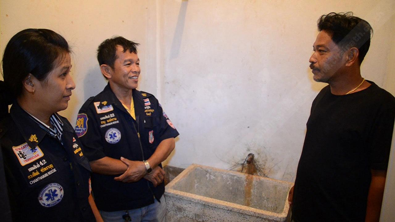 จากการสอบถาม นายบรรยงค์ ผู้ดูแลศาลเจ้า เปิดเผยว่า ขณะที่นายบรรยงค์กำลังตรวจตราความเรียบร้อยภายในบริเวณศาล ได้มีชายวัยรุ่นที่มาหาปลาใกล้กับบริเวณดังกล่าว มาเข้าห้องน้ำ จากนั้นก็รีบวิ่งออกมาด้วยอาการตื่นตกใจ บอกว่าพบทารกอยู่ในห้องน้ำ ซึ่งอยู่ด้านหลังศาลเจ้า จึงพากันไปตรวจสอบ เมื่อพบก็ถึงกับผงะ เป็นทารกเพศหญิง อายุประมาณ 2 สัปดาห์ น้ำหนัก 2,215 กรัม ถูกทิ้งไว้ภายในห้องน้ำ สภาพมีผ้าขนหนูสีฟ้าเปื้อนดินห่อร่างอยู่ 2 ผืน พอแกะผ้าออกยังพบว่าภายในยังพบแหวนเงินอีก 1 วง ที่ลำตัวของเด็กเริ่มมีมดเข้ามากัดตามลำตัวและใบหน้า ด้วยความตกใจจึงรีบแจ้งเจ้าหน้าที่ให้มาช่วยเหลือ แต่ทารกดังกล่าวเริ่มมีอาการอ่อนเพลียแล้ว ตนจึงตัดสินใจนำตัวส่ง รพ.แหลมสิงห์ เพื่อให้แพทย์ทำการช่วยเหลือก่อน เนื่องจากเกรงว่าเด็กจะเป็นอันตราย