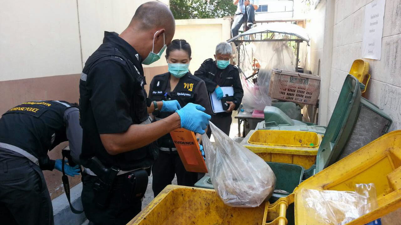 บุกตรวจห้องพักพ่อค้าขายปลาหมึกย่างแฟนเก่าของเหยื่อสงสัยฆ่าหั่นศพ พบรอยคราบเลือดที่ประตูห้องน้ำกับเส้นผมถูกทิ้งในถังขยะ พยานยืนยันเห็นเหยื่อมาหาแฟนเก่าที่ห้องพัก แต่พอวันรุ่งขึ้นแฟนเก่าหายตัวไปพร้อมกับรถ จยย.และรถเข็นขายปลาหมึก ส่วนชนวนเหตุฆ่าสยองน่าจะมาจากเรื่องหึงหวง ส่วนหมายจับยังไม่ออกต้องรอผลตรวจดีเอ็นเออย่างเป็นทางการอีกครั้ง ขณะที่ลูกสาวมั่นใจชิ้นส่วนศพเป็นแม่ของตัวเองแน่นอน