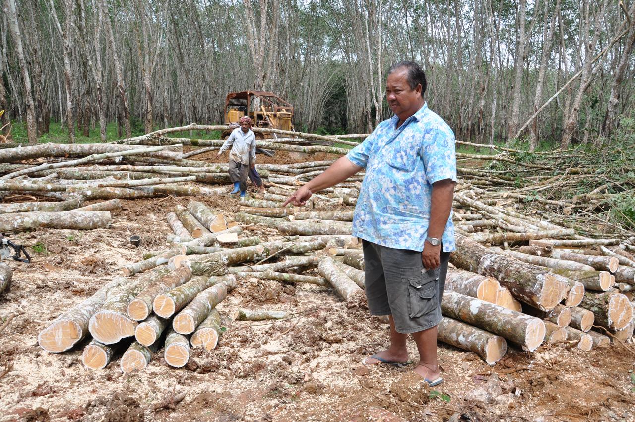 ชาวสวนยางพาราน้ำตาตกใน ถึงที่สุดแล้วต้องโค่นต้นยางแล้วขายไม้ เพราะมองไม่เห็นอนาคต แม้ว่าจะสร้างทำกันมาถึง30ปี และที่ผ่านมา ไม่เคยคิดจะไปปลูกพืชผลอย่างอื่น