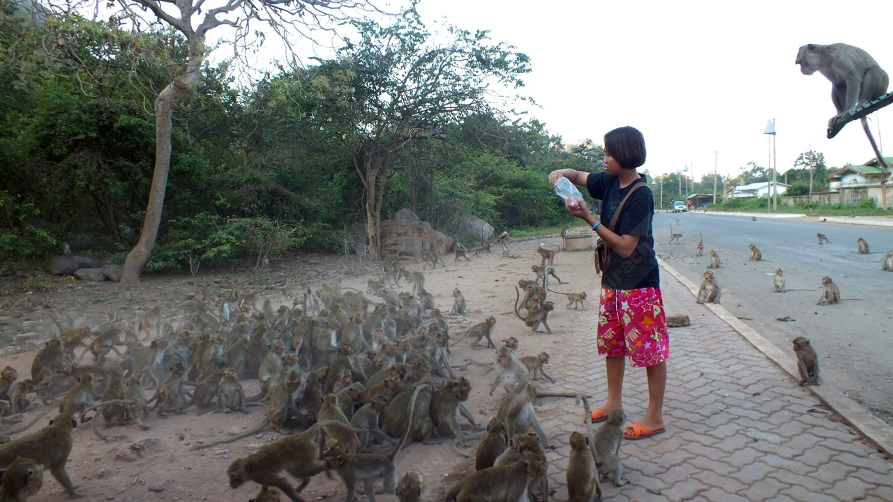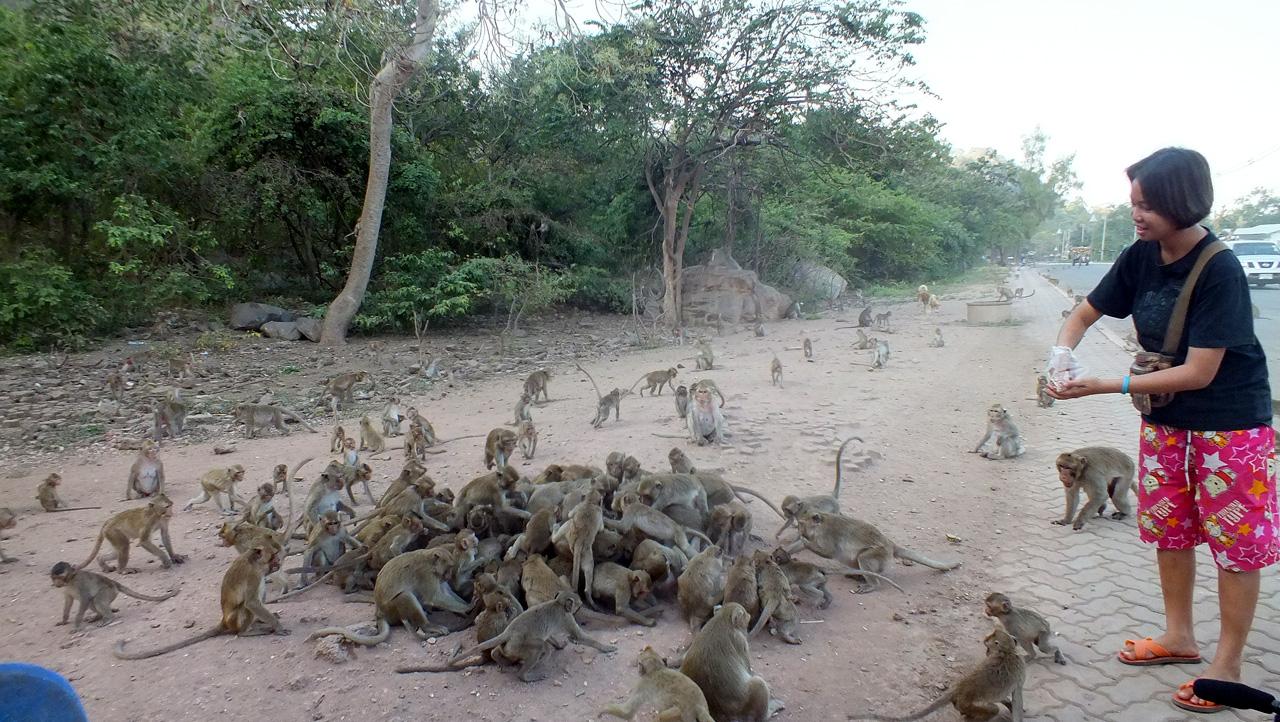 " ปีนี้เข้าสู่ฤดูแล้งเร็วมาก ผลไม้ และอาหารการกินของลิงในป่าที่อยู่บนภูเขาหลังวัดขาดแคลน ทำให้ฝูงลิงเริ่มอดอยาก ทั้งวันจะลงมานั่งเฝ้าเพื่อรอนักท่องเที่ยวมาให้อาหาร และสังเกตว่าลิงแสมที่วัดมีจำนวนมากขึ้นเรื่อยๆ ช่วงอากาศร้อนจัด ลิงจะเกาะกลุ่มอยู่ทั่วไปรอบเขาหน่อ แต่ส่วนใหญ่จะพากันมาอยู่ใต้ร่มไม้ บ่อน้ำ หรือคลองหลังวัดเพื่อลงเล่นน้ำ " แม่ค้าคนหนึ่งกล่าว.