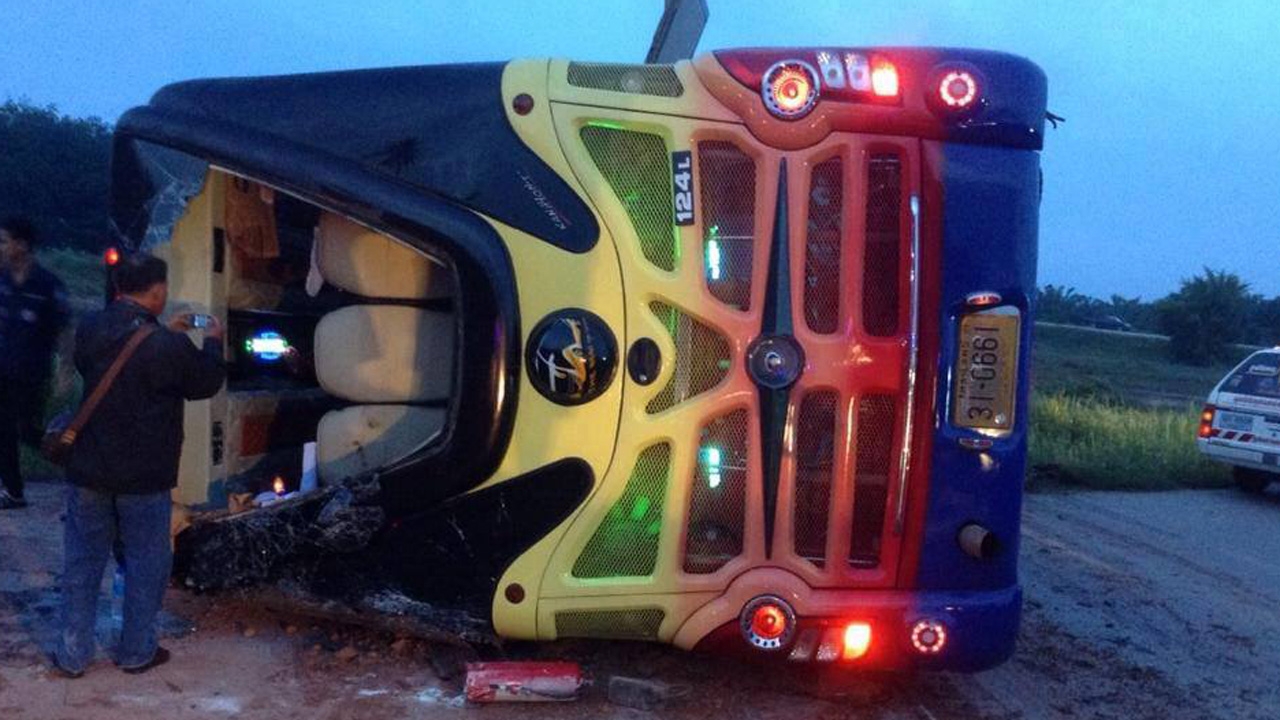 รถบัสขนเจ้าหน้าที่ กทม.สำนักเขตทวีวัฒนา 43 คน ไปสัมมนา จ.กระบี่ พลิกคว่ำในพื้นที่ ต.เขาตอก อ.เคียนซา จ.สุราษฎร์ธานี บาดเจ็บ 21 สาหัส 3…