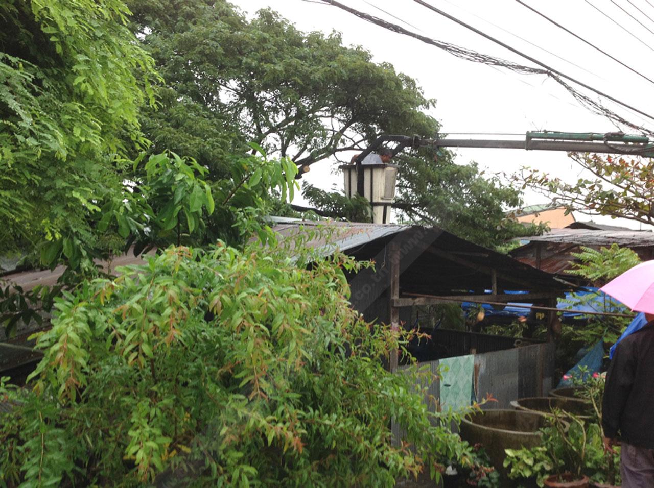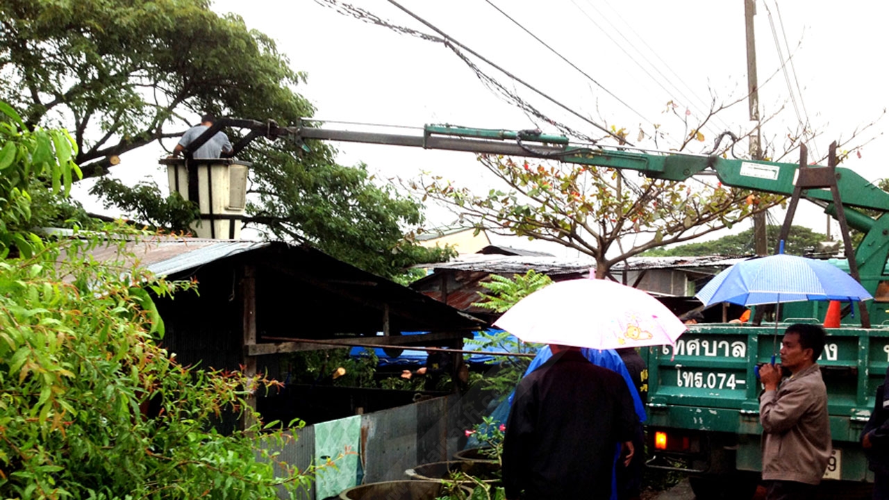ด้านนายสุเมธ บุญยก นายกเทศมนตรีเมืองพัทลุง ได้นำเจ้าหน้าที่กองป้องกันและบรรเทาสาธารณภัย สำนักงานเทศบาลเมืองพัทลุง นำรถกระเช้าไฟฟ้า เร่งตัดกิ่งไม้ ต้นก้ามปู ขนาดเส้นรอบวง 1.50 เมตร อายุกว่า 100 ปี ที่กำลังจะล้มทับบ้านของนางบุญพิษ กลับดี อายุ 62 ปี อยู่บ้านเลขที่ 25 ถ.ชมอินทร์ ต.คูหาสวรรค์ ในเขตเทศบาลเมืองพัทลุง โดยนางบุญพิษ เจ้าของบ้านเล่าว่าจากสภาพฝนที่ตกลงมาอย่างหนัก ทำให้บ้านของตนมีสภาพน้ำท่วมขังยาวนาน น้ำจึงกัดเซาะรากไม้ ทำให้ต้นไม้เอนทับบ้านเมื่อตอนดึกที่ผ่านมา จนทำให้บ้านได้รับความเสียหายดังกล่าว