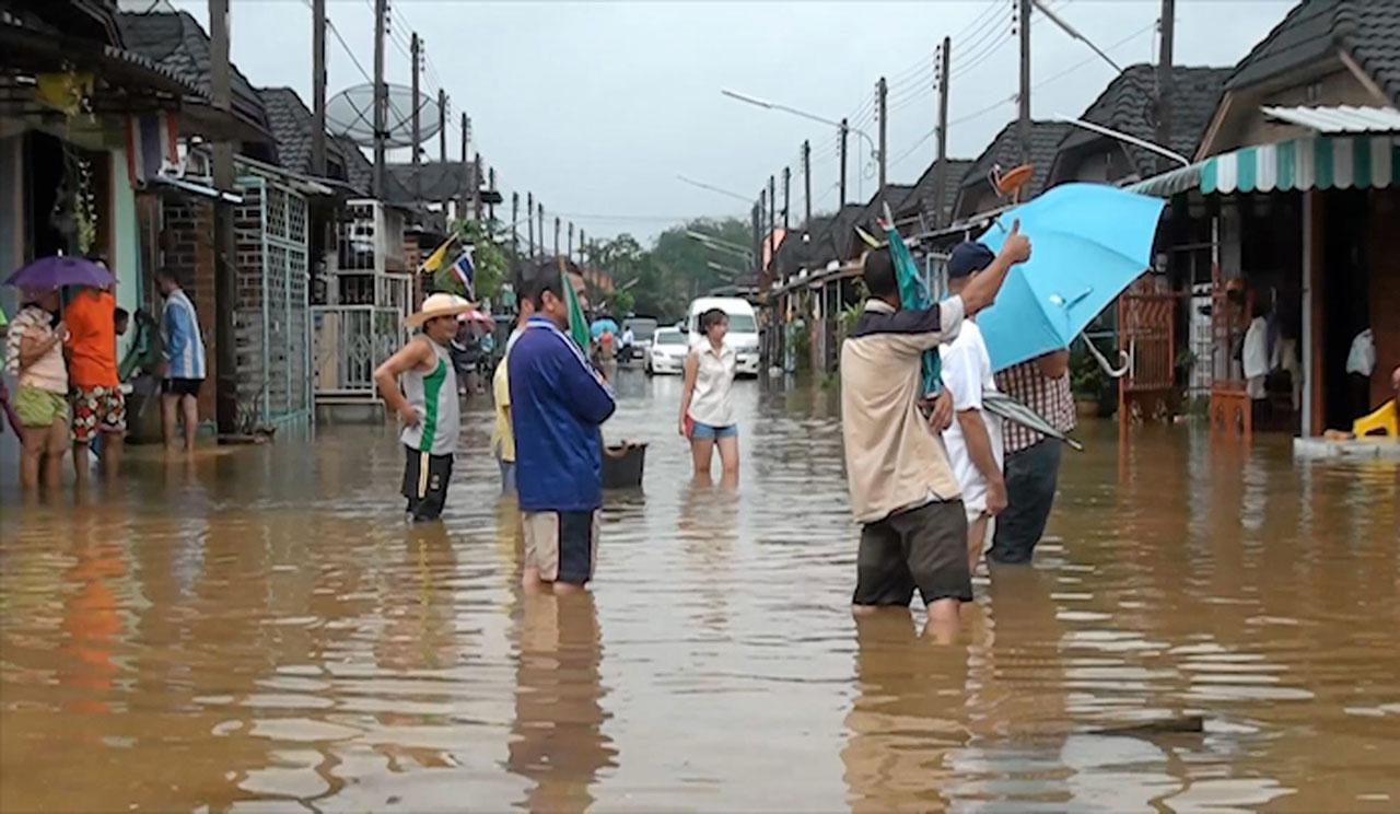 สำหรับพื้นที่ จ.นราธิวาส ที่ประสบภัยน้ำท่วม ยังคงมีฝนตกหนักใน 13 อำเภอ ส่งผลทำให้แม่น้ำสายหลัก 3 สาย คือ สุไหงโก-ลก บางนรา และสายบุรี มีปริมาณน้ำล้นตลิ่ง เนื่องจากน้ำป่าเทือกบนเขาสันกาลาคีรี ใน อ.สุคิริน ได้ไหลมาสมทบ ทำให้น้ำท่วมบ้านเรือนและพื้นที่ทางการเกษตร จำนวน 9 อำเภอประกอบด้วย อ.สุคิริน แว้ง สุไหงปาดี สุไหงโก-ลก ศรีสาคร จะแนะ ระแงะ ตากใบ และรือเสาะ โดยเฉพาะ อ.แว้ง สุคิริน และตากใบ หนักสุด ระดับน้ำท่วมขังสูง 1.50-2 เมตร โรงเรียน 9 แห่ง ต้องปิดการเรียนการสอนโดยไม่มีกำหนด