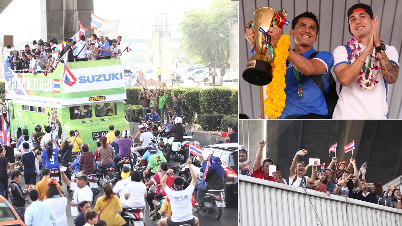 แฟนบอลแห่ต้อนรับขุนพลช้างศึก หลังชนะทีมชาติมาเลเซีย คว้าแชมป์ ซูซูกิคัพ 2014 / เฮลิคอปเตอร์ทหารตก ขณะบินสำรวจสถานการณ์น้ำท่วม ในพื้นที่ จ.ยะลา จนท.ได้รับบาดเจ็บ 4 นาย เบื้องต้นคาดเกิดจากสภาพอากาศไม่เอื้ออำนวยเหตุจากพายุฝน / สมาคมผู้สื่อข่าวและช่างภาพอาชญากรรมแห่งประเทศไทย ตั้งฉายาตำรวจประจำปี 2557 สำนักงานตำรวจแห่งชาติ รับ “ตร.ลายพราง” ขณะที่ “สมยศ” ถูกมองเป็น “ผบ.ขายฝัน” ด้าน “พงศ์พัฒน์” รับฉายา “นายพลช็อกโลก”