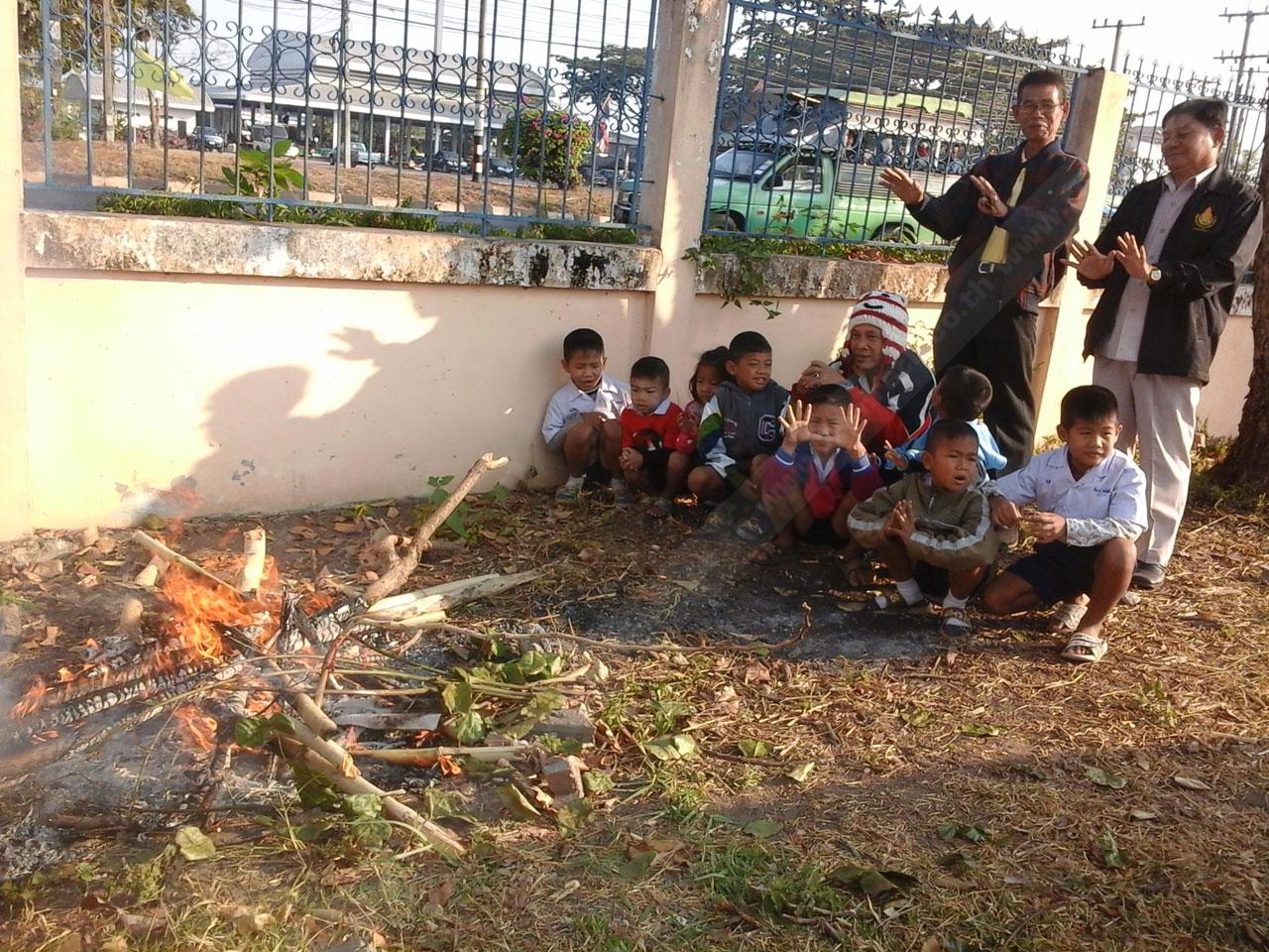 อีสาน อุณหภูมิยังลดอย่างต่อเนื่อง ที่นาแห้ว จ.เลย เหลือ6องศาฯ ชาวบ้านลุกขึ้นมาก่อไฟผิง แม้แต่น้องหมายังต้องมาซุกตัวใกล้กองไฟหาไออุ่น ส่วนอุดรฯครูนำนร.ออกผึ่งแดด วอนบริจาคเสื้อกันหนาว...