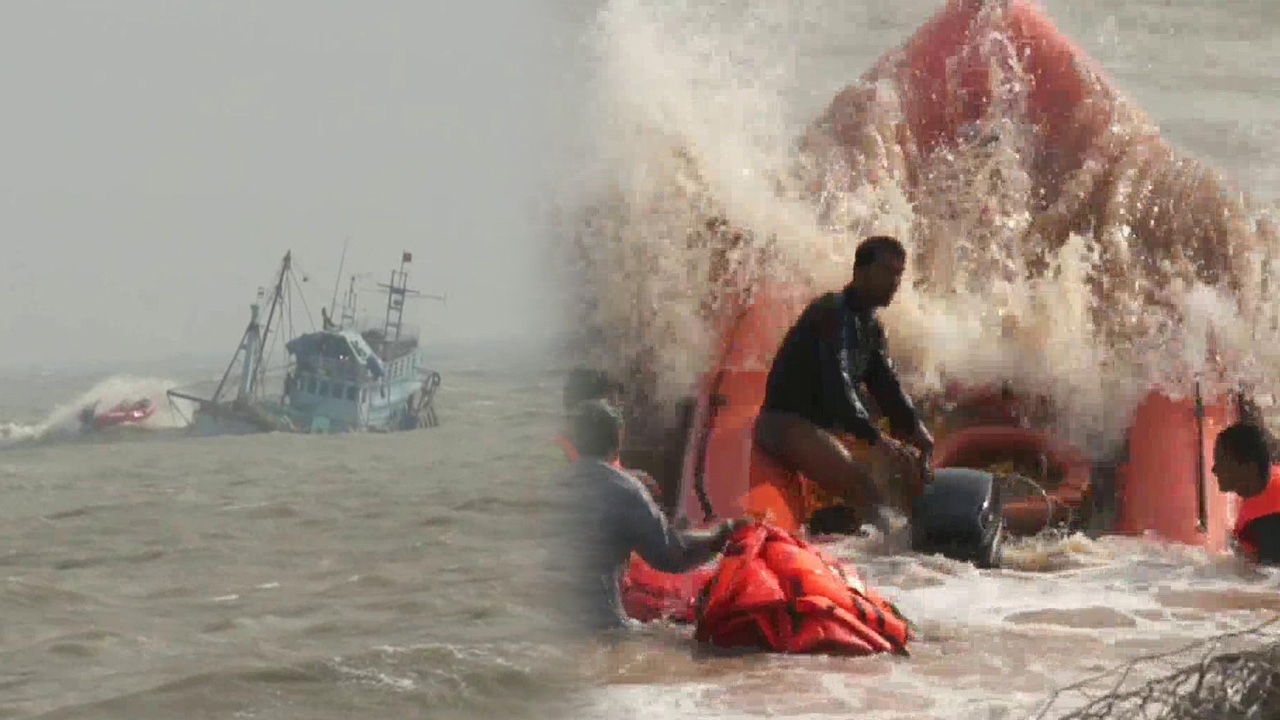ฝ่ากระแสคลื่นลม เข้าช่วยระทึก ลูกเรือประมงรุ่งรัศมี หลังทอดสมอจอดหลบคลื่นลมอยู่หลังเกาะ แต่ปรากฏว่าสายเชือกสมอขาด ซัดเรือเกยโขดหิน เกือบจมกันทั้งลำ...