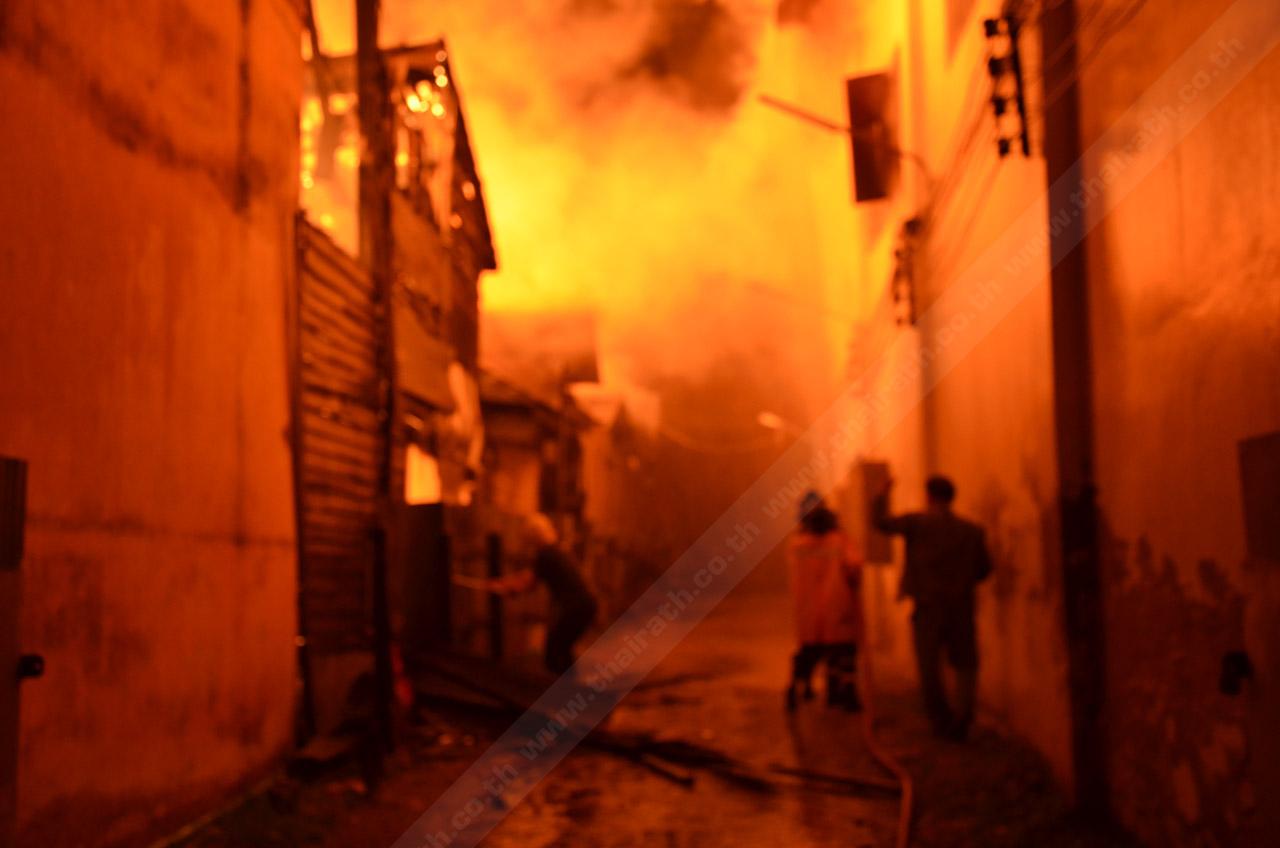 อย่างไรก็ตาม หลังจากระดมฉีดน้ำอยู่นานกว่าครึ่งชั่วโมง เจ้าหน้าที่จึงสามารถควบคุมเพลิงไว้ได้ พบว่าเพลิงเผาผลาญห้องแถวไม้สักเก่าทั้ง 8 คูหา ไม่มีผู้เสียชีวิต และบาดเจ็บ ค่าเสียหายเบื้องต้น ยังประเมินไม่ได้ ส่วนสาเหตุต้องรอเจ้าหน้าที่พิสูจน์หลักฐาน มาตรวจสอบอย่างละเอียดต่อไป.