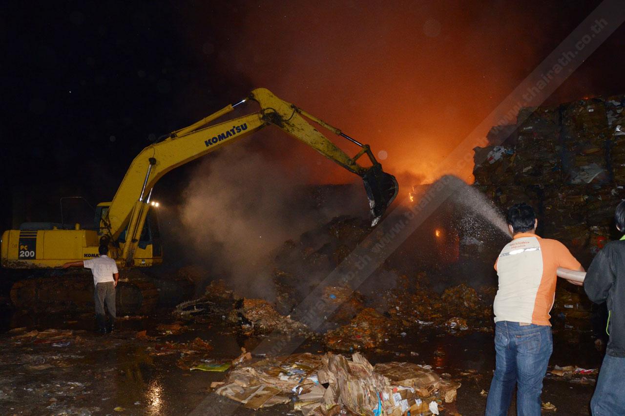 เนื่องจากกองกระดาษมีจำนวนมาก เจ้าหน้าที่จึงได้ขอรับการสนับสนุนรถดับเพลิงในพื้นที่ใกล้เคียงมาเพิ่มเติม จากรถดับเพลิงจาก อบต.วัดโบสถ์ เทศบาลบ้านสร้าง และ อบจ.ปราจีนบุรี เข้าช่วยดับเพลิง โดยมีเจ้าหน้าที่จากโรงงาน ได้ใช้รถแบ็กโฮ นำกระดาษที่อยู่รอบนอกออกมา เพื่อตัดให้เพลิงอยู่ในวงจำกัด แต่ยังไม่สามารถดับเพลิงได้ทันที