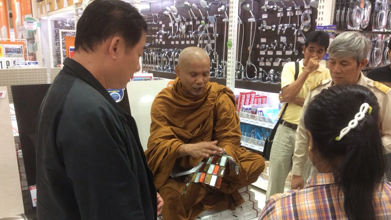 โดยพระขริต หรือ หลวงพ่อขจิต ได้แจ้งว่า ทางวัดได้รับบริจาคเงินเพื่อทำการก่อสร้างอุโบสถ งบประมาณ 17 ล้านบาท ซึ่งหลังก่อสร้างเสร็จ เหลือขั้นตอนการติดกระเบื้องโมเสดรอบๆ อุโบสถและภายใน จึงได้รับบริจาคจากประชาชน เพื่อซื้อกระเบื้องโมเสด พร้อมอุปกรณ์ต่างๆ กับทางห้างสรรพสินค้าดังกล่าว ตั้งแต่เดือน ก.ค. 2557 ที่ผ่านมา เป็นเงินประมาณเกือบ 5 ล้านบาท และหลังการติดตั้ง ปรากฏว่า กระเบื้องได้เปลี่ยนสีจากสีขาวเป็นสีดำ และจากสีทองก็เปลี่ยนเป็นสีดำ คล้ายเป็นเชื้อรา ซึ่งอาจเกิดจากคุณภาพสินค้าไม่ได้มาตรฐาน จึงต้องการให้มีการรับผิดชอบค่าใช้จ่ายที่เกิดขึ้นทั้งหมด
