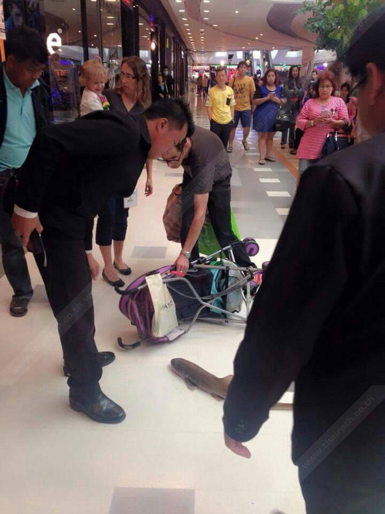 จากกรณีกระแสโซเชียลขณะนี้ได้มีการแชร์ภาพฉลามกระโดดออกจากตู้อควาเรียม ขนาดกว้าง 5 เมตร สูงประมาณ 150 ซม. ซึ่งตั้งอยู่ภายในศูนย์การค้าเซ็นทรัลพลาซา อุบลราชธานี บริเวณชั้น 1 ชนรถเข็นเด็กของลูกค้าชาวต่างชาติคว่ำ ท่ามกลางความตกใจแตกตื่นของลูกค้าที่กำลังเดินซื้อของภายในห้างซึ่งภาพ เหตุการณ์ดังกล่าวได้มีการเผยแพร่ทั้งหมด 4 ภาพ โดยเจ้าหน้าที่ห้างแจงตรวจสอบกล้องวงจรปิดพบมีเด็กเอาของเล่นไปเคาะกระจกของ บ่อปลา ทำให้ฉลามตกใจกระโดดออกมาดังกล่าว โชคดีไม่มีผู้ใดได้รับอันตราย