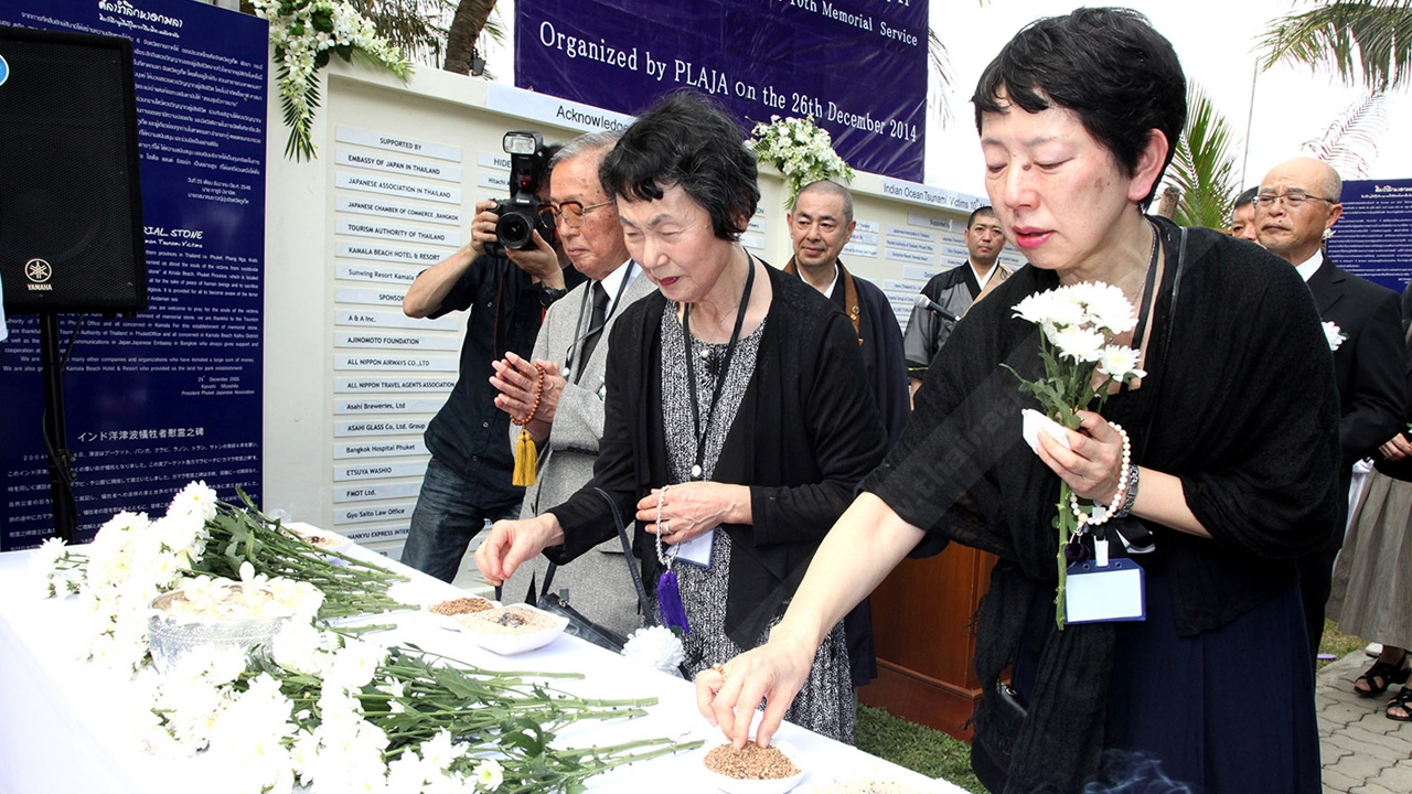 เมื่อเวลา 09.00 น. วันที่ 26 ธ.ค. ที่ จ.ภูเก็ต ผู้สื่อข่าวรายงานว่า สมาคมญี่ปุ่น-ภูเก็ต ได้ประกอบพิธีไว้อาลัยผู้เสียชีวิต และสูญหายจากภัยพิบัติสึนามิพัดถล่ม เมื่อวันที่ 26 ธ.ค. 47 หรือเมื่อ 10 ปีก่อน ซึ่งในเหตุการณ์ครั้งนั้น มีชาวญี่ปุ่นที่เดินทางมาท่องเที่ยวยัง จ.ภูเก็ต และชายฝั่งอันดามันเสียชีวิตจำนวนหนึ่ง สมาคมญี่ปุ่น-ภูเก็ตจึงได้สร้างศิลาระลึกผู้เสียชีวิตจากภัยพิบัติสึนามิไว้ที่บริเวณสวนสาธารณะหาดกมลา ต.กมลา อ.กะทู้ จ.ภูเก็ต เพื่อระลึกถึงดวงวิญญาณของชาวญี่ปุ่น ตลอดจนนักท่องเที่ยวจากทั่วโลกที่มาเสียชีวิตในเหตุการณ์ดังกล่าว