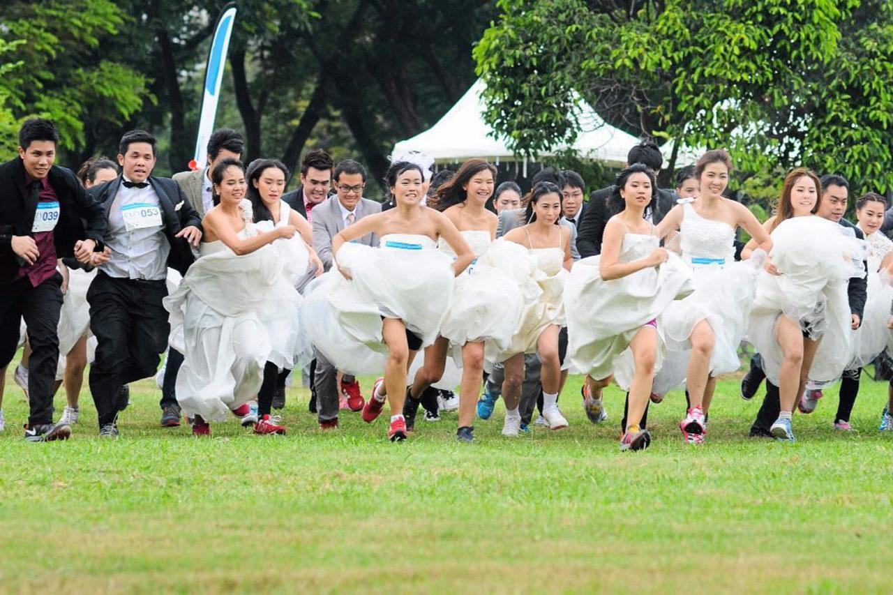 บรรยากาศภายใน สวนลุมพินี ช่วงปลายฝนต้นหนาวเดือน พ.ย.ที่ผ่านมา อบอวลไปด้วยความรักของคู่รักบ่าวสาวที่เตรียมเข้าสู่ประตูวิวาห์ โดยคลื่นวิทยุแห่งหนึ่ง จัดกิจกรรมวิ่งแข่งคู่บ่าวสาวพิชิตงานแต่งในฝัน “อีซี่ รันนิ่ง ออฟ เดอะไบรด์ ปี 3” ซึ่งมีคู่บ่าวสาวจำนวน 75 คู่ 150 ชีวิต แต่งชุดวิวาห์มาร่วมชิงชัย กติกาคือต้องผ่านด่านที่กำหนดไว้ อาทิ เจ้าบ่าวอุ้มเจ้าสาว แข่งคำนวณรายรับรายจ่าย แข่งจับคู่ภาพเหมือน แข่งเป่าลูกโป่งรูปหัวใจ จนถึงด่านสุดท้ายคือด่านไขกุญแจรัก วัดดวงให้เจ้าบ่าวหากุญแจเพื่อไขล็อกกุญแจหัวใจของเจ้าสาว ซึ่งทุกด่านเป็นไปอย่างทุลักทุเล ท่ามกลางเสียงหัวเราะ และรอยยิ้มเป็นระยะๆ กระทั่งได้คู่ชนะเลิศคือ นายณัฐพล งอกทรัพย์ กับ น.ส.ปิยรัตน์ พูลศิลป์ คว้ารางวัลต่างๆ มูลค่า 1.3 ล้านบาท อาทิ จัดงานแต่งงานในโรงแรมสุดหรู และแพ็กเกจฮันนีมูนที่บาหลี กลายเป็นคู่วิวาห์โชคดีแห่งปีไปในที่สุด.