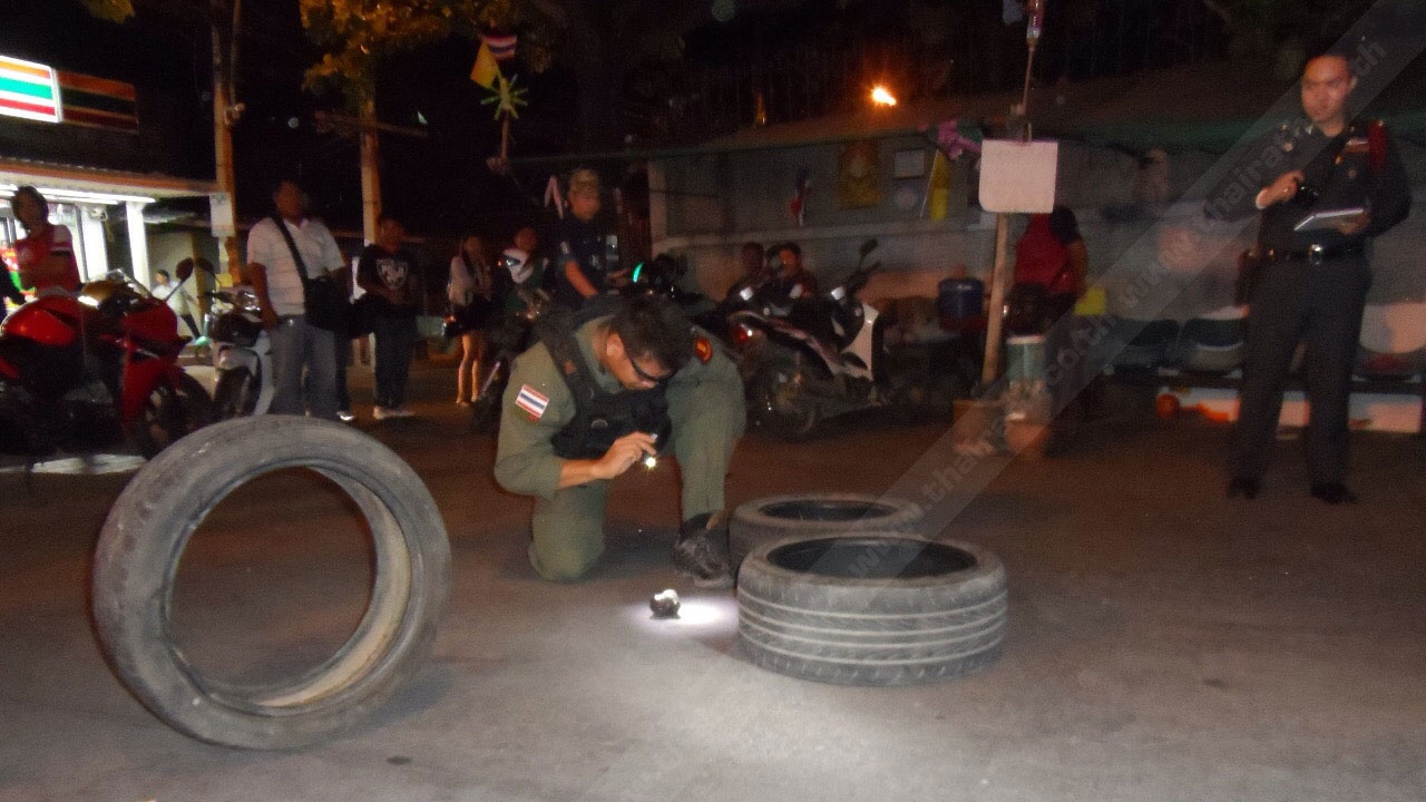 เมื่อเวลา 03.00 น. วันที่ 30 ธ.ค. 57 ร.ต.ท.จักรกฤษ จันตาคำ พนักงานสอบสวน สภ.เมืองพัทยา จ.ชลบุรี รับแจ้งจากชาวบ้านว่ามีกลุ่มวัยรุ่นซิ่งรถจักรยานยนต์กว่า 20 คัน ไล่ทำร้ายกันก่อนได้ยินเสียงคล้ายระเบิดดังขึ้น และกลุ่มวัยรุ่นทั้งหมด ยังทำวัตถุต้องสงสัยคล้ายระเบิดตกหล่น เหตุเกิดภายในซอยก่อไผ่ 1 พัทยาใต้ ม.10 ต.หนองปรือ อ.บางละมุง จ.ชลบุรี หลังรายงานผู้บังคับบัญชาทราบ เร่งนำกำลังไปตรวจสอบที่เกิดเหตุบริเวณสี่แยกก่อไผ่ 1 พบชาวบ้าน ที่กำลังอยู่ในอาการตกใจกับเหตุการณ์และต่างมุงดูจำนวนมาก เจ้าหน้าที่ต้องกันผู้ที่ไม่เกี่ยวข้อง ห่างจากพื้นที่เกรงว่า จะเกิดเหตุอันตราย