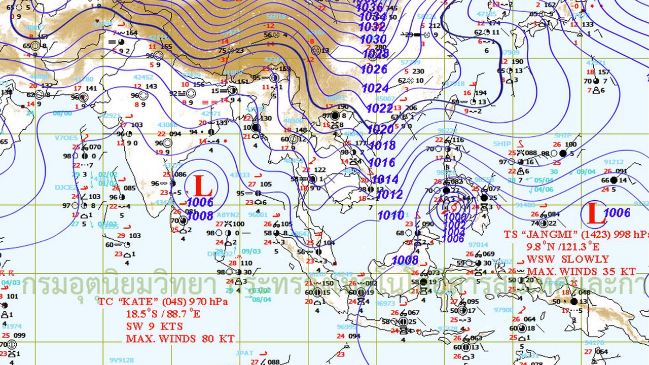 พยากรณ์อากาศสำหรับประเทศไทยตั้งแต่เวลา 06:00 วันนี้ ถึง 06:00 วันพรุ่งนี้