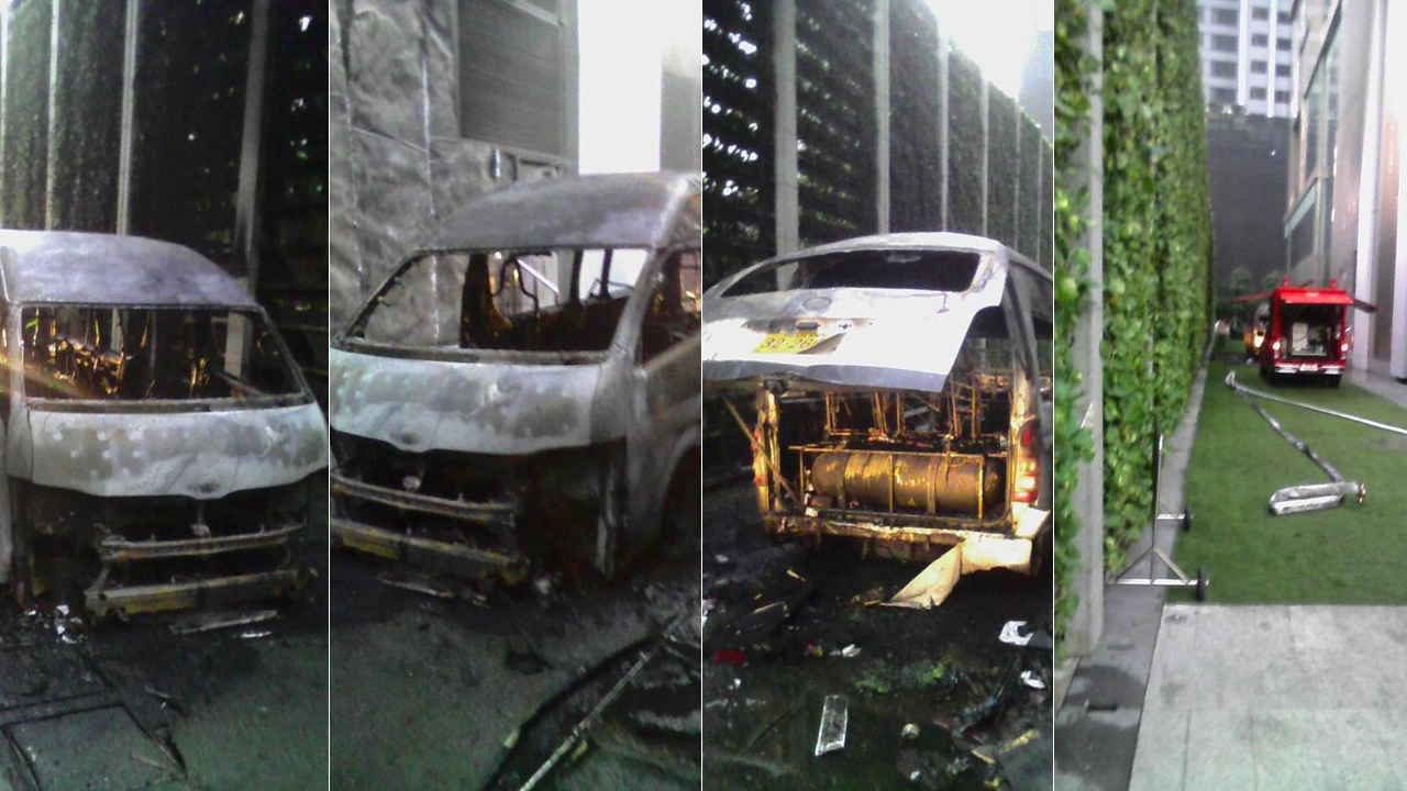 ทั้งนี้ รถตู้คันดังกล่าวเป็นรถของบริษัทแห่งหนึ่ง มี นายชำนาญ โพธิ์คุ้ม อายุ 62 ปี เป็นคนขับรถ โดยช่วงเช้า นายชำนาญขับรถตู้เพื่อมารับพนักงานบริษัท ที่โรงแรมฮิลตัน สุขุมวิท 24 แขวงคลองตัน เขตคลองเตย กทม. เมื่อถึงโรงแรมขณะที่กำลังถอยหลัง เกิดเพลิงไหม้ขึ้นมา นายชำนาญจึงรีบหนีออกมาจากรถตู้ได้ทันเวลา เปลวเพลิงได้ลุกไหม้รถตู้ทั้งคัน ก่อนเจ้าหน้าที่ดับเพลิงจะฉีดน้ำดับจนหมด