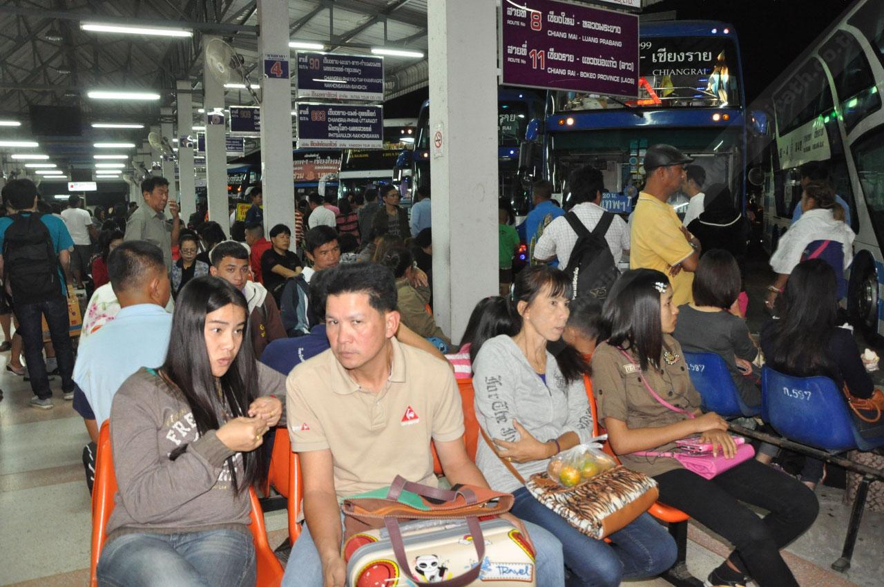 เมื่อเวลา 19.00 น.วันที่ 4 ม.ค. มีรายงานบรรยากาศ การเดินทางกลับของประชาชนและนักท่องเที่ยวหลังเทศกาลปีใหม่ บริเวณสถานีขนส่งผู้โดยสารแห่งที่ 2 ถ.พหลโยธิน ต.สันทราย อ.เมือง จ.เชียงราย พบว่า มีประชาชนจำนวนมากจนล้นแน่นสถานีกว่า 15,000 คน เจ้าหน้าที่ต้องกั้นปิดถนนรอบชานชาลา เพื่อไม่ให้รถส่วนตัวเข้าภายในสถานี โดยมีเจ้าหน้าที่คอยอำนวยความสะดวกป้องกัน ระมัดระวังความปลอดภัยแก่ผู้โดยสารอย่างใกล้ชิด และเพิ่มเที่ยวรถโดยสารทุกสายกว่า 100 คัน โดยนายวรวุฒิ มาอินทร์ ขนส่งจังหวัดเชียงราย ได้นำเจ้าหน้าที่ พร้อมเจ้าหน้าที่ ป.ป.ส.ภาค 5 ตั้งโต๊ะตรวจปัสสาวะและเป่าเครื่องตรวจวัดแอลกอฮอล์คนขับรถโดยสารทุกคน