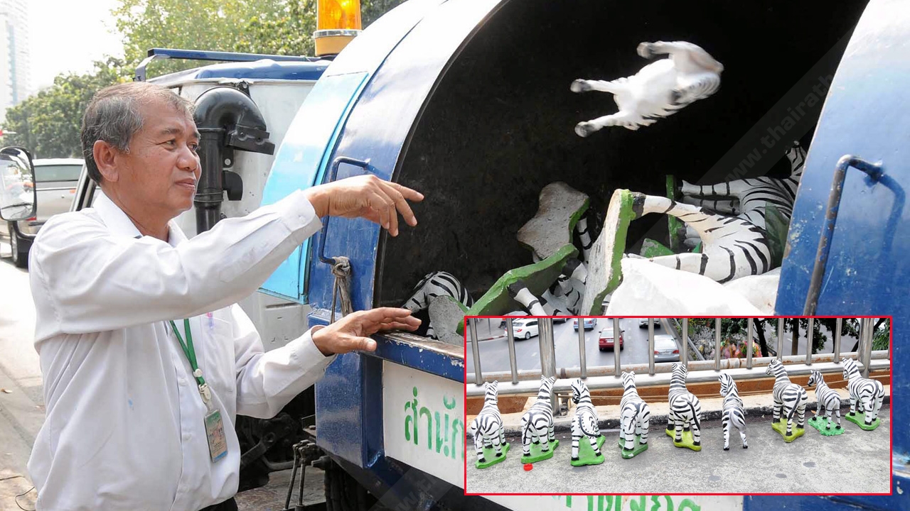 เจ้าหน้าที่จากเขตจตุจักรมาเก็บของเซ่นไหว้บนสะพานลอยโค้ง 100 ศพ ข้างศาลอาญาถนนรัชดาภิเษก มีคนนำมาเซ่นไหว้จำนวนมากบนสะพานลอย ใส่รถขยะนำไปทิ้งเป็นการจัดระเบียบให้สะอาดตา.