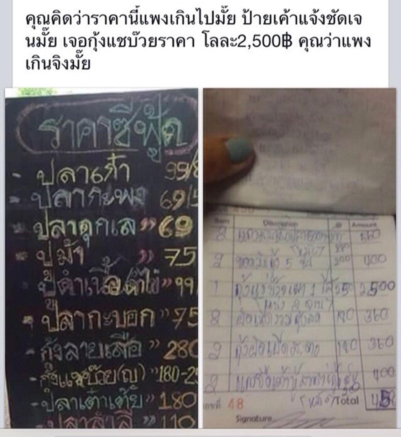 อึ้ง! กุ้งแชบ๊วย กก.ละ 2,500 บาท ลูกค้าไปทานในร้านอาหาร เมืองกระบี่ โพสต์เฟซบุ๊ก ระบุ ป้ายไม่ชัดเจน อาจส่งผลต่อการท่องเที่ยว