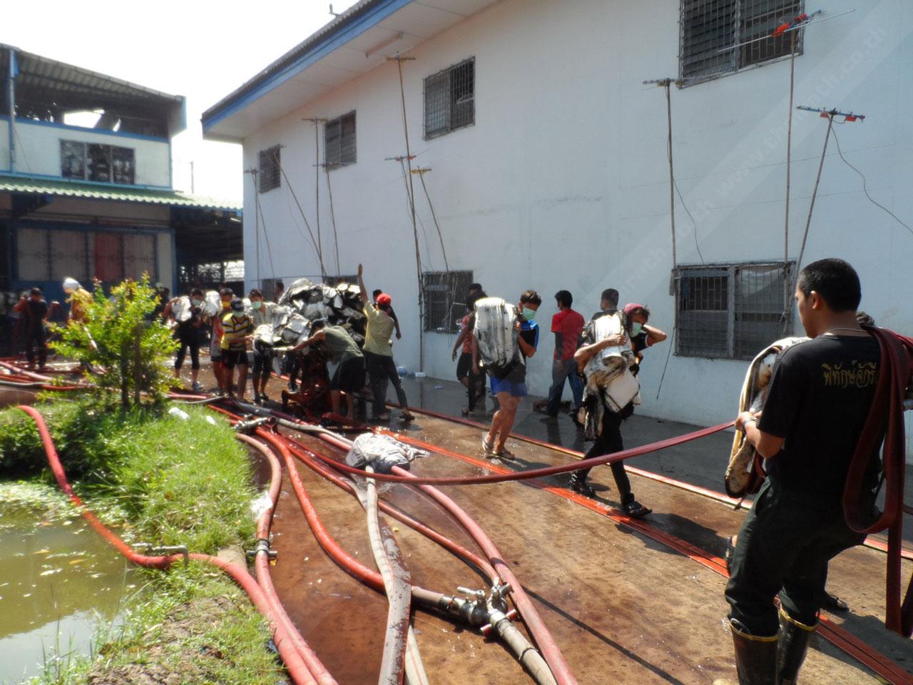 นายชาติชาย เผยว่า จากการสอบถามคนงานที่เห็นเหตุการณ์ ทราบว่า คนงานเริ่มมาทำงานในช่วง 08.00 น. เนื่องจากเมื่อวานเป็นวันหยุดของโรงงาน เมื่อคนงานเข้ามา ก็เห็นกลุ่มควันไฟเริ่มลอยออกมาจากโกดัง จึงตะโกนให้ช่วยกันนำน้ำมาดับไฟ เมื่อเปิดโกดังออก ก็พบว่าไฟกำลังลุกไหม้อยู่บนกองผ้า จากนั้นก็เริ่มรุนแรงขึ้นเรื่อยๆ จนไม่สามารถดับได้ ขณะที่คนงานอีกส่วนหนึ่งวิ่งไปแจ้งเจ้าของโรงงานให้ทราบ และได้มีการโทรศัพท์แจ้งไปยังหน่วยดับเพลิงหลายแห่งให้มาช่วยดับไฟ แต่เนื่องจากบริเวณทางเข้า เป็นซอยขนาดเล็ก อยู่ห่างจากถนน 2 กม. จึงทำให้รถดับเพลิงเข้าถึงลำบาก ประกอบกับน้ำในคลองใกล้เคียงโรงงานแห้ง