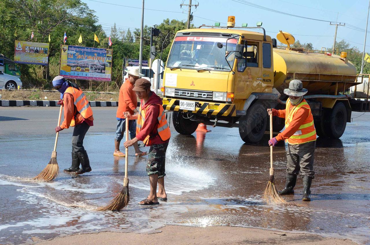 ผู้สื่อข่าวรายงานเพิ่มเติมว่า เวลา 13.00 น. วันเดียวกัน เจ้าหน้าที่แขวงการทาง จ.อุดรธานี ได้นำรถน้ำมาฉีดล้างพื้นถนนบริเวณจุดกลับรถตลาดไทยศิริ ถนนมิตรภาพ อุดรธานี–หนองขาย บ้านนาข่า ต.นาข่า อ.เมือง จ.อุดรธานี เนื่องจากยังมีคราบน้ำยางก้อนถ้วยบนพื้นถนน.