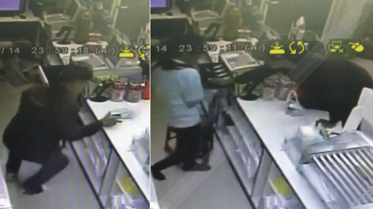 โจรใช้มีดบุกจี้ร้านสะดวกซื้อ ได้แค่ 300 บาท วงจรปิดบันทึกตอนก่อเหตุ คนร้ายทำทีมาซื้อเครื่องดื่มชูกำลัง แล้วกระโดดขึ้นเคาน์เตอร์เอาเงินในลิ้นชัก ก่อนหลบหนีไป