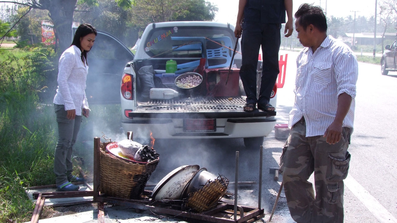 แม่ค้าลูกชิ้นปิ้งคนขยัน หวิดเสียรถใหม่ป้ายแดงที่ซื้อมาใช้วิ่งขายของ เหตุเพราะติดเตาถ่านไว้แล้วขับไปตลาดนัดจนไฟไหม้สิ่งของด้านหลังรถ ยังดีที่มี จยย.ขี่แซงมาตะโกนบอกว่า "ไฟไหม้รถ" จึงรีบจอดก่อนที่ชาวบ้านจะช่วยกันดับไว้ได้...