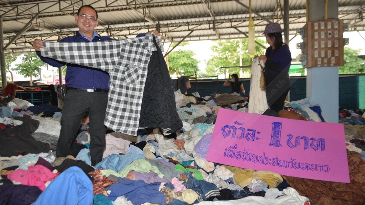 นายพัฒนา ถนอมเสียง อายุ 44 ปี อาชีพนักดนตรี ลูกค้า เผยว่า ตนมาค้นเสื้อกันหนาวในราคาตัวละ 1 บาท เมื่อเลือกดูแล้วเป็นผ้าที่ยังดูใหม่และดี ซึ่งค้นได้หลายร้อยตัวใส่กระสอบถึง 25 กระสอบ เพื่อจะนำร่วมกับศิลปินดนตรีทางเหนือนำไปแจกจ่ายให้ผู้ยากจนบนดอยสูง โดยก่อนหน้านำขึ้นไปเป็นที่ถูกใจของผู้ที่ได้รับ ตนจึงได้มาค้นเลือกอีกเพราะถือว่าได้ทำบุญกับผู้ที่หนาวเย็นได้รับความอบอุ่นก็จะได้ผลบุญอีกทางหนึ่ง