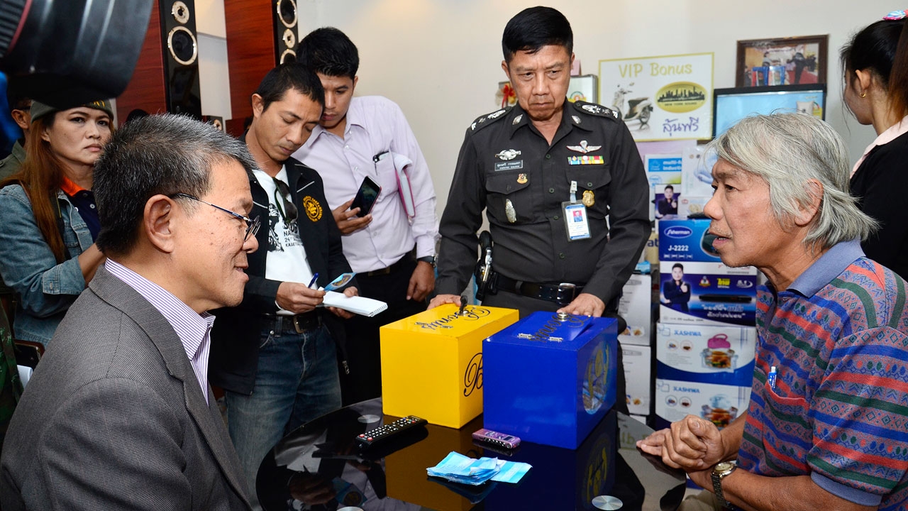 รองผวจ.ลุยเองนำ จนท.และชาวบ้าน บุกร้านขายเครื่องใช้ไฟฟ้าที่ส่ง จม.ไปหลอกให้มารับรางวัล พอมาที่ร้านก็หว่านล้อมให้จับสลาก แล้วเรียกเก็บภาษี 38% แต่ของที่ได้กิ๊กก๊อกไม่สมราคา และไม่ยอมให้คืน ชี้เป็นการหลอกลวงเข้าข่ายฉ้อโกง