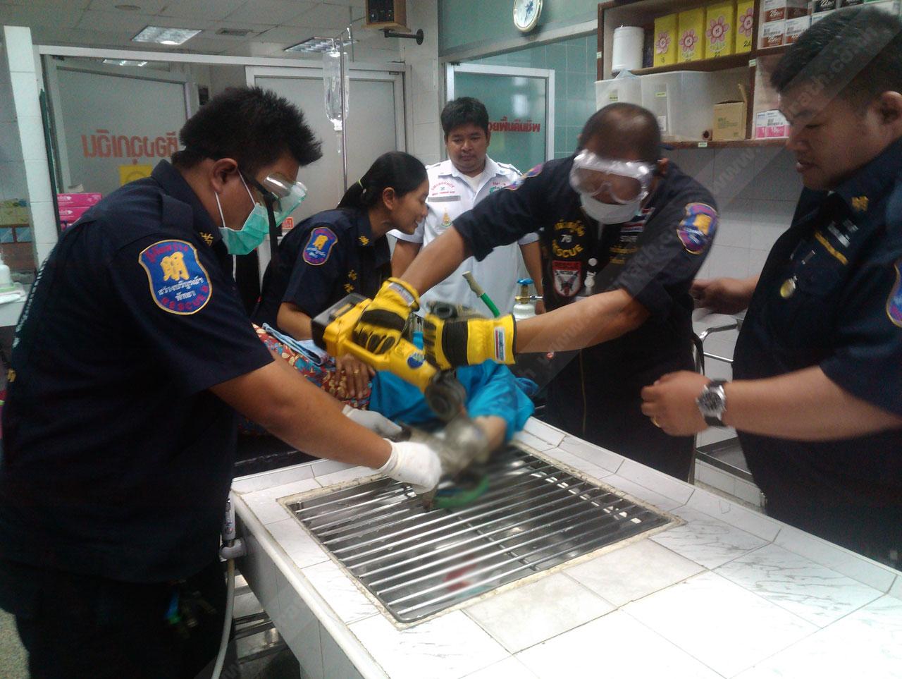 เมื่อเวลา 16.00 น. วันที่ 17 ม.ค.58 ศูนย์วิทยุหน่วยกู้ภัยมูลนิธิสว่างบริบูรณ์ธรรมสถานเมืองพัทยา จ.ชลบุรี ได้รับแจ้งมีคนถูกเครื่องบดหมูดูดมือเข้าไปติดคาอยู่ในเครื่องได้รับบาดเจ็บสาหัส เหตุเกิดภายในตลาดสดเขาไม้แก้ว หมู่ 1 ต.เขาไม้แก้ว อ.บางละมุง จ.ชลบุรี หลังรับแจ้งจึงนำกำลังเจ้าหน้าที่พร้อมรถอุปกรณ์และรถพยาบาล เดินทางไปตรวจสอบ