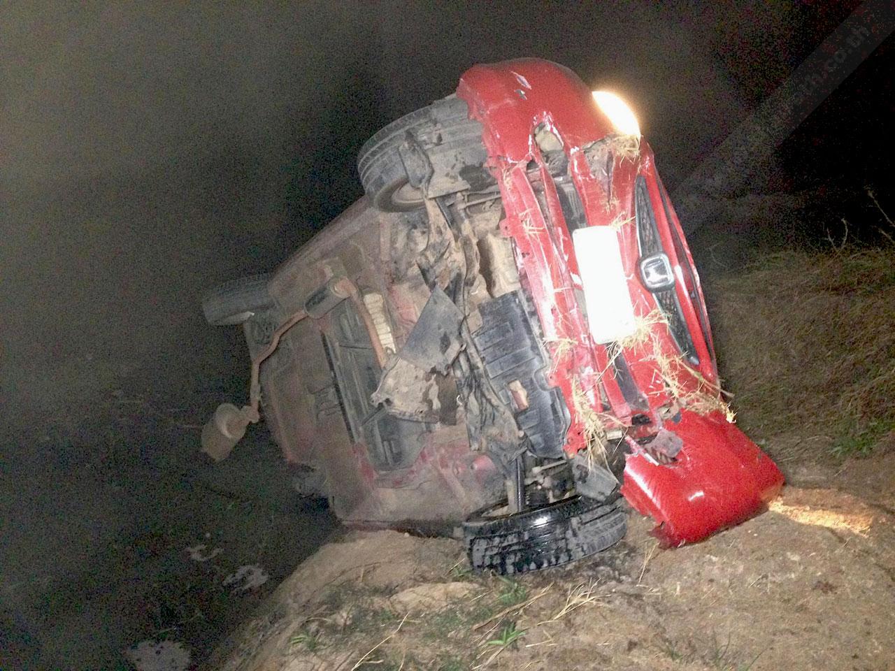 ที่เกิดเหตุ พบรถยนต์เก๋งยี่ห้อฮอนด้า รุ่นแจ๊ส สีแดง หมายเลขทะเบียน กง 3948 ศรีสะเกษ ตกลงจากถนนบริเวณคอสะพาน มีคนขับและคนที่นั่งมาด้วยติดอยู่ภายใน รวม 4 คน หน่วยกู้ภัยรีบใช้เครื่องมือตัดถ่างช่วยเหลืองัดรถนำตัวออกมาทราบชื่อคือ น.ส.อัฉริยา ทนทนาน อายุ 27 ปี อยู่บ้านเลขที่ 244 หมู่ 8 ตำบลบึงบูรพ์ อำเภอบึงบูรพ์ จังหวัดศรีสะเกษ เป็นคนขับไม่ได้รับบาดเจ็บ นายวิศิษฏ์ เสนาะ อายุ 21 ปี บ้านเลขที่ 5 ม. 1 ต.คูซอด อ.เมืองศรีสะเกษ ได้รับบาดเจ็บมีแผลแตกที่คิ้วซ้าย นางเยาวดี เสนาะ อายุ 45 ปี แม่ของนายวิศิษฏ์นั่งมาเบาะหลังของรถบาดเจ็บที่ขา และ นางอทิยา จิตติ อายุ 45 ปี บ้านเลขที่ 143 ม. 1 ต.คูซอดเจ็บตามลำตัว หน่วยกู้ภัยนำส่ง รพ.ศรีสะเกษ