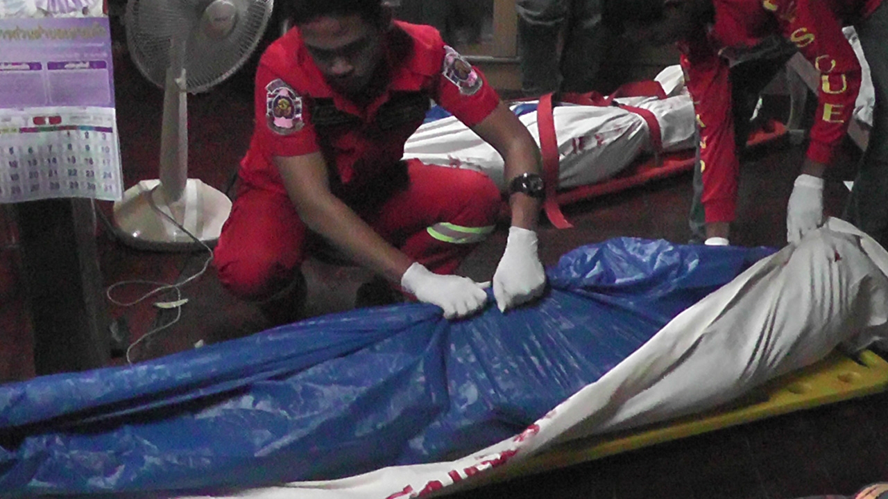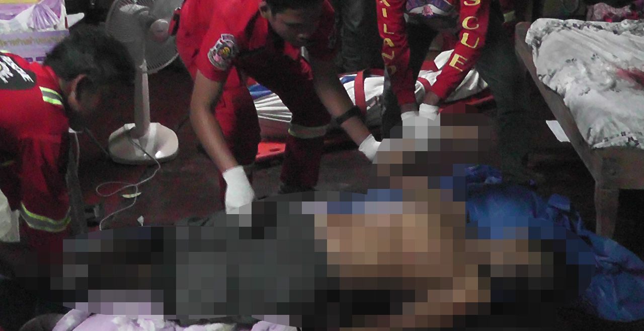 เมื่อเวลา 23.45 น. วันที่ 17 ม.ค.58 ร.ต.ท.สุกรี พรหมมาศ พงส.สภ.ลานสกา จ.นครศรีธรรมราช ได้รับแจ้งเหตุมีผู้ถูกยิงเสียชีวิต 2 ศพ เหตุเกิดที่บ้านเลขที่ 33 หมู่ 4 9 เขาแก้ว อ.ลานสกา จึงพร้อมด้วย พ.ต.อ.เชิดชัย โชติสุทธิ์ ผกก. พ.ต.ท.ศิรพงศ์ โพธิพัฒน์ รอง ผกก.ป. พ.ต.ท.ประเสริฐ นาคคง รองผกก.สส. พ.ต.ท.สุรินทร์ ชูศรี หัวหน้าพนักงานสอบสวน พ.ต.ท.สมใจ โพธิ์ศรีทอง สวป. เจ้าหน้าที่พิสูจน์หลักฐานตำรวจภูธร จ.นครศรีธรรมราช แพทย์เวร รพ.ลานสกา อาสาสมัครมูลนิธิธรรมรัศมีมณีรัตน์ รุดไปที่เกิดเหตุ โดยบ้านที่เกิดเหตุเป็นบ้านครึ่งปูนครึ่งไม้แบบยกสูง มีใต้ถุนบ้าน ภายในบ้านพบศพนางเพ็ง ขวัญอ่อน อายุ 87 ปี เจ้าของบ้าน นอนตายอยู่บนเตียงนอนขนาดเล็กที่อยู่ริมหน้าต่าง ในสภาพนอนตะแคงซ้าย ผู้ตายสวมเสื้อคอกระเช้าแบบไม่มีแขนสีขาว นุ่งผ้าถุงลายล่องสีดำแดง มีบาดแผลถูกยิงด้วยกระสุนปืนขนาด 11 มม. เข้าที่ดั้งจมูกด้านซ้าย 1 นัด กระสุนฝังใน ส่วนบนพื้นไม้กระดานปาร์เกต์ ใกล้กัน พบศพ นายสฤษดิ์ ทิพย์สวรรค์ อายุ 52 ปี บุตรบุญธรรมของนางเพ็ง นอนตายอยู่ ในสภาพนุ่งกางเกงขาสั้นสีเทา ไม่สวมเสื้อ มีบาดแผล ถูกยิงด้วยกระสุนปืนขนาดเดียวกัน เข้าที่กลางศีรษะ (กลางกระหม่อม) 1 นัด กระสุนฝังใน อย่างไรก็ตาม จากสภาพศพที่คราบเลือดแห้งกรัง และศพเริ่มจะแข็งตัว เจ้าหน้าที่คาดว่า ผู้เสียชีวิตทั้งสอง ถูกยิงมาไม่ต่ำกว่า 6 ชั่วโมง