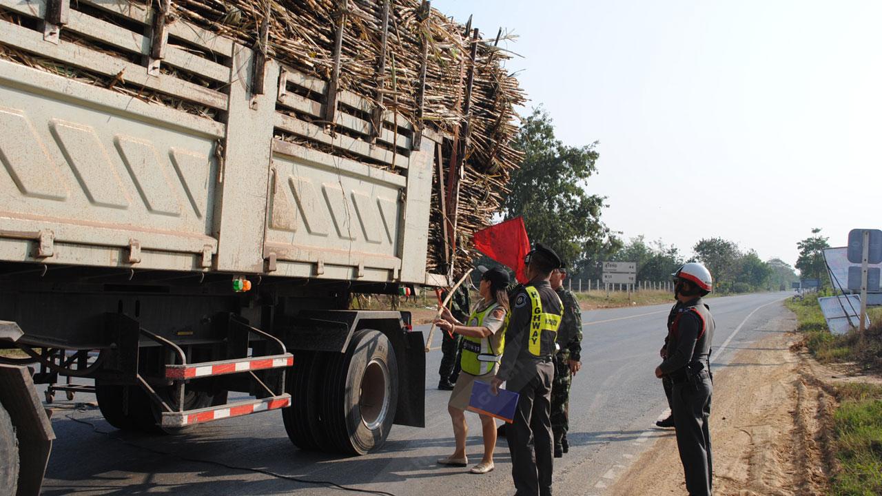 จังหวัดสุโขทัย กวดเข้ม ตั้งจุดตรวจสกัด รถบรรทุกอ้อย น้ำหนักเกินมาตรฐาน ป้องกันอุบัติเหตุ ขณะชาวบ้านร้องเรียน ได้รับความเดือดร้อนจากรถบรรทุกอ้อยที่มีน้ำหนักเกิน ทำอ้อยตกเกลื่อนถนน