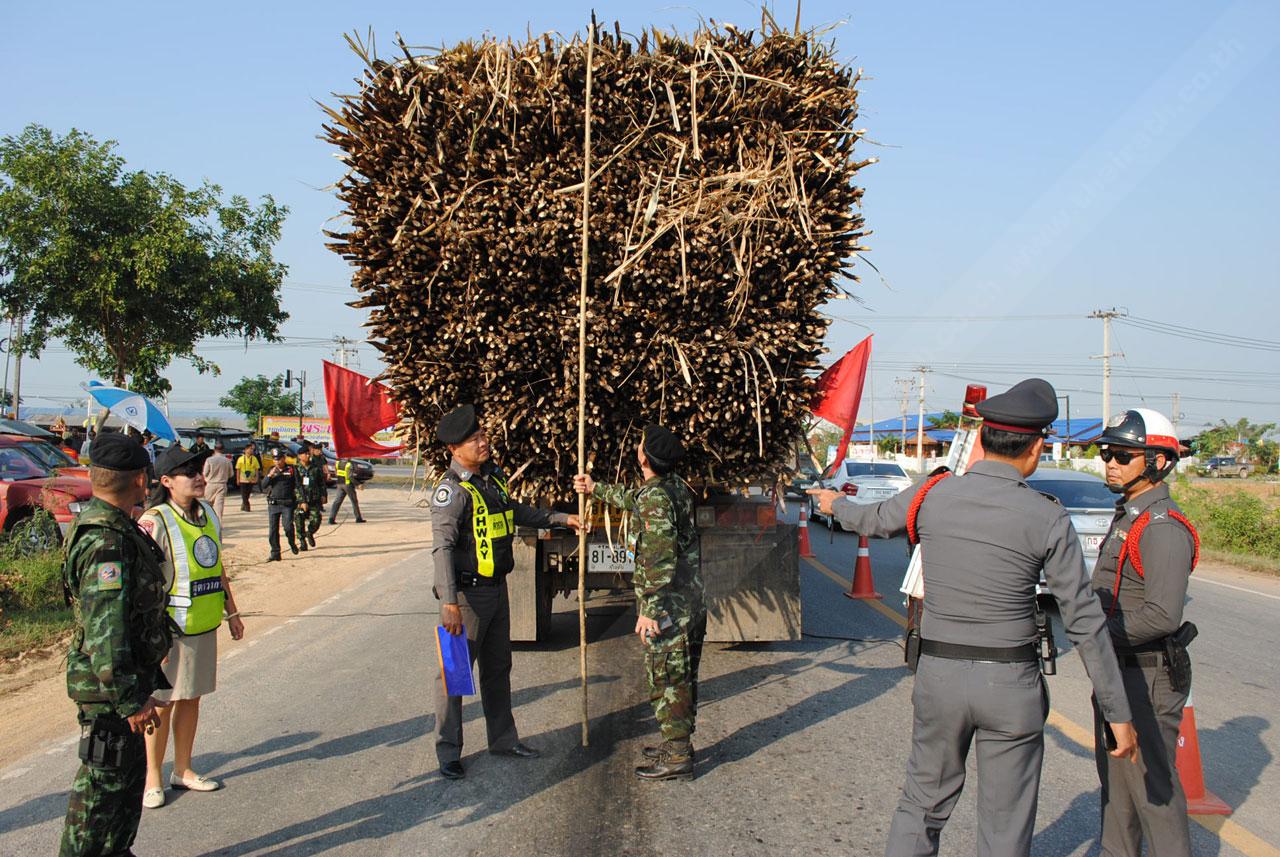 เมื่อเวลา 16.00 น. วันที่ 19 ม.ค. พล.ต.ผดุง ยิ่งไพบูลย์สุข ผบก.จทบ.พิษณุโลก พร้อมด้วย จนท.ตำรวจ สภ.สวรรคโลก จนท.ขนส่งสุโขทัย จนท.แขวงการทางสุโขทัย จนท.อุตสาหกรรมสุโขทัย จนท.ตำรวจทางหลวงสุโขทัย และกองกำลังทหารจากจังหวัดทหารบกพิษณุโลก ทำการตั้งจุดตรวจสกัด บริเวณสี่แยกซอยเก้า หน้าที่พักสายตรวจ ต.นาทุ่ง จ.สุโขทัย เพื่อกวดขันและป้องปรามรถบรรทุกอ้อย ที่น้ำหนักเกินกว่าที่กฎหมายกำหนด เพื่อเป็นการป้องกันการเกิดอุบัติเหตุที่อาจจะเกิดขึ้นได้ เนื่องจากที่ผ่านมา ทางจนท.ทหาร ได้รับการร้องเรียนจากประชาชนว่า ได้รับความเดือดร้อนจากรถบรรทุกอ้อยที่มีน้ำหนักเกิน และทำอ้อยตกหล่นบนถนนจนเกิดอุบัติเหตุมาแล้ว 7 ครั้ง แต่ไม่มีผู้เสียชีวิต