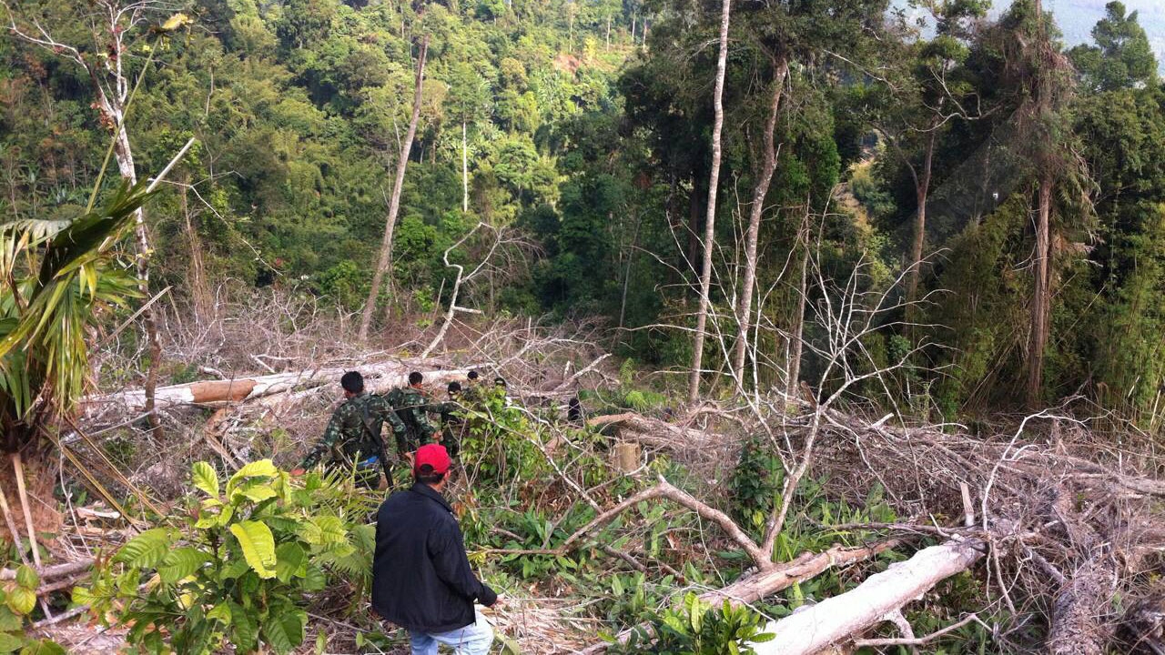 นายอินทรพล กล่าวว่า วันนี้เจ้าหน้าที่ได้เข้าไปในเขตพื้นที่ ตามการร้องเรียนของชาวบ้าน ว่ามีนายทุนหลายรายจ้างชาวบ้านเข้าไปแผ้วถาง เพื่อปลูกยางพาราและปาล์มน้ำมันบนพื้นที่ป่าต้นน้ำ ในพื้นที่ ม.1-2 และ ม.6-7 ต.เขาต่อ เป็นเนื้อที่หลายพันไร่ ที่ถูกแผ้วถางทำลายและแปรรูปไม้