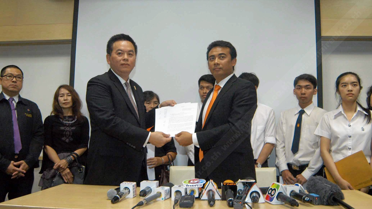 ตัวแทนสถาบันเทคโนโลยีพระจอมเกล้าเจ้าคุณทหารลาดกระบัง เข้ายื่นหนังสือให้ผู้บริหารธนาคารไทยพาณิชย์ แสดงจุดยืนในคดีทุจริตเงิน 1,600 บาท