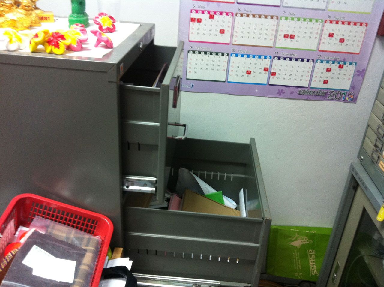 ที่เกิดเหตุพบ นางรำพึง บัวจันทร์ อายุ 53 ปี เจ้าหน้าที่การพยาบาล รออยู่หน้าอาคาร นำเจ้าหน้าที่เข้าตรวจสอบห้องการพยาบาล พบว่าประตูห้องมีรอยถูกงัดและตัดขอบประตูที่เป็นอลูมิเนียม จนได้รับความเสียหาย ข้าวของภายในห้อง ตู้เก็บเอกสาร โต๊ะทำงาน ตู้เก็บยา ถูกงัดและถูกรื้อค้น ข้าวของกระจัดกระจาย ตรวจสอบเบื้องต้น พบว่าเงินสดจำนวน 5 พันบาทเศษ สร้อยคอทองคำหนัก 1 สลึง 4 เส้น สร้อยข้อมือหนัก 1 สลึง 1 เส้น ของนางรำพึง และเพื่อนเจ้าหน้าที่หายไป