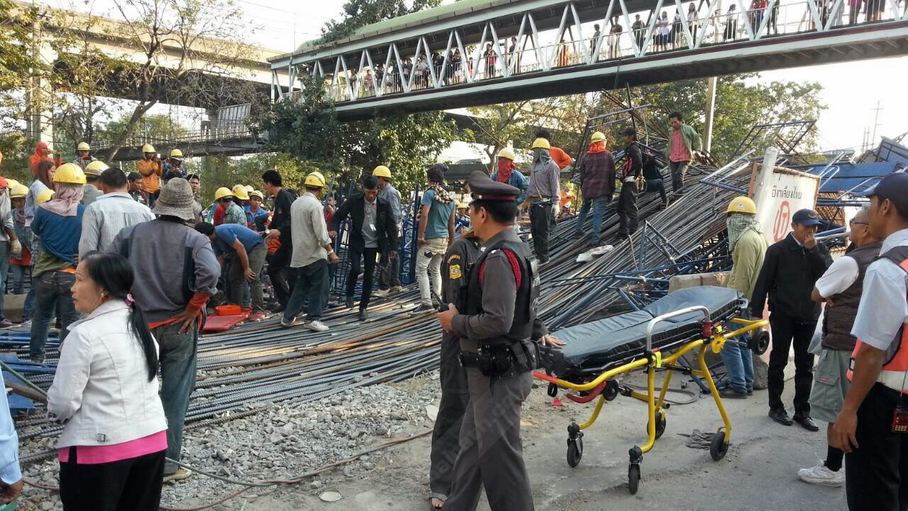 ด้านนายเจร รุ่งฐานีย์ วิศวกรใหญ่ ฝ่ายโครงการพิเศษและก่อสร้าง การรถไฟแห่งประเทศไทย (รฟท.) เปิดเผยว่า หลังเกิดเหตุนั่งร้านและเสาโครงเหล็กที่รอการเทคอนกรีตเป็นตอม่อรถไฟฟ้าสายสีแดงบริเวณหน้าห้างไอทีสแควร์ พังหล่นลงมาทับคนงานก่อสร้างของ บมจ.อิตาเลียนไทย ได้รับบาดเจ็บจำนวนหนึ่ง เบื้องต้น รฟท.ประสานให้บริษัทนำตัวผู้บาดเจ็บเข้ารักษาพยาบาลโดยด่วนแล้ว
