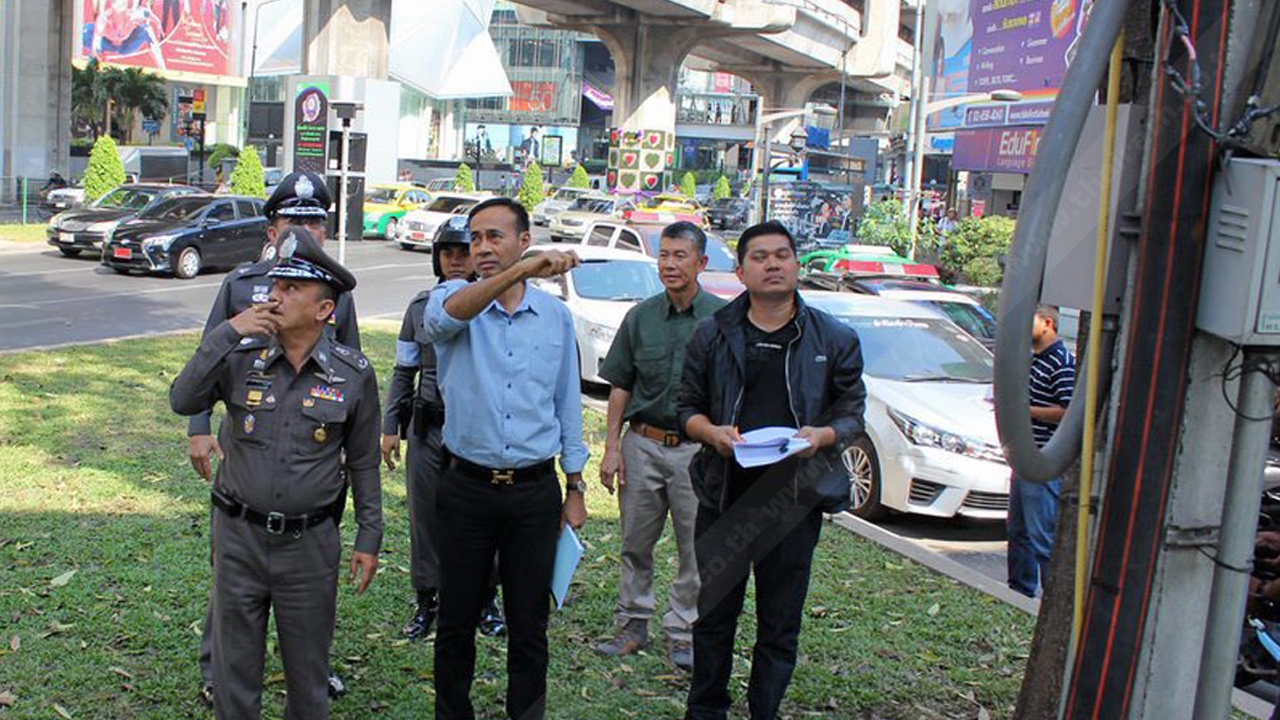 บ่ายวันเดียวกัน ที่สี่แยกปทุมวัน พล.ต.ท.ศรีวราห์ รังสิพราหมกุล ผบช.น. พล.ต.ต.วิสูตร ฉัตรชัยเดช ผบก.น.6 พล.ต.ต.สมบัติ มิลินทจินดา ผบก.สส.บช.น. พ.ต.อ.นพศิลป์ พูลสวัสดิ์ ผกก.3 บก.สส.บช.น.นายจรัส นีรนาทไพบูลย์ นักวิชาการป่าไม้ชำนาญการ สำนักป้องกันรักษาป่าและควบคุมไฟป่า กรมป่าไม้ ตำรวจ กก.1 บก.ปทส. และเจ้าหน้าที่สำนักงานเขตปทุมวัน เดินทางมาตรวจที่ป้อมตำรวจจราจรซึ่งตั้งอยู่บริเวณกลางสี่แยกเนื่องจากมีการติดตั้งป้ายโฆษณาของเอกชนขนาดใหญ่บนป้อมจราจร