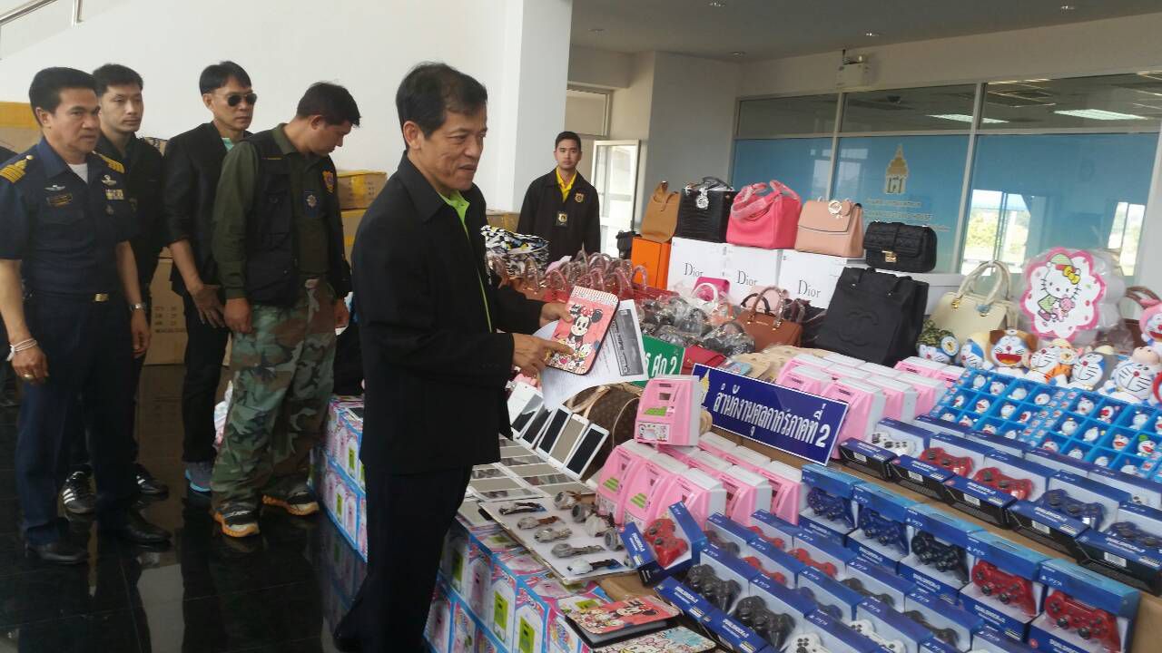 จากการตรวจค้น พบสินค้าละเมิดลิขสิทธิ์และเครื่องหมายการค้า ประเภทกระเป๋าเด็ก กระเป๋าเป้ กระเป๋าสะพาย ยี่ห้อ Hello Kitty และ Tablet ยี่ห้อ Samsung Galaxy Tab 5 จำนวน 687 ชิ้น น้ำหนัก 1,000 กิโลกรัม และเมื่อวันที่ 20 ม.ค. เวลา 10.15 น. เจ้าหน้าที่ด่านศุลกากรมุกดาหาร ตรวจยึด โทรศัพท์ ของเล่นลายคิตตี้ ที่นอนลายการ์ตูนดิสนีย์ กระเป๋าถือสตรี นาฬิกา และสินค้าอื่นๆ รวม 19 รายการ ที่ตู้คอนเทนเนอร์ของบริษัทหนึ่ง หลังจากมีการนำเข้าสินค้าจากต่างประเทศ และตรวจพบมีการซุกซ่อนสินค้ามากับตู้คอนเทนเนอร์ เสื้อผ้าสำเร็จรูป เกินกว่าที่สำแดงในรายการที่แสดงต่อเจ้าหน้าที่ ซึ่งถือเป็นการสำแดงเท็จเพื่อหลีกเลี่ยงอากร