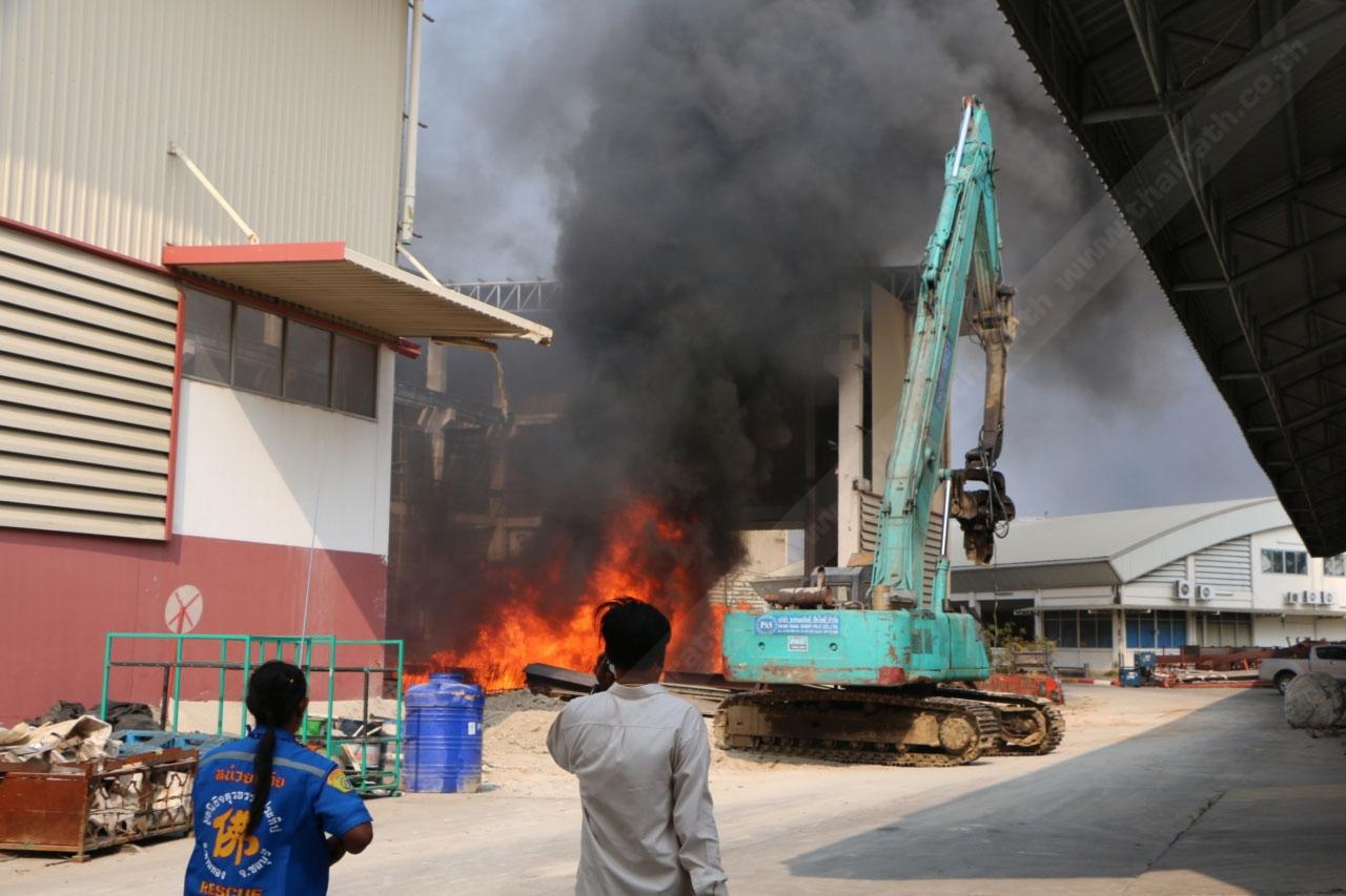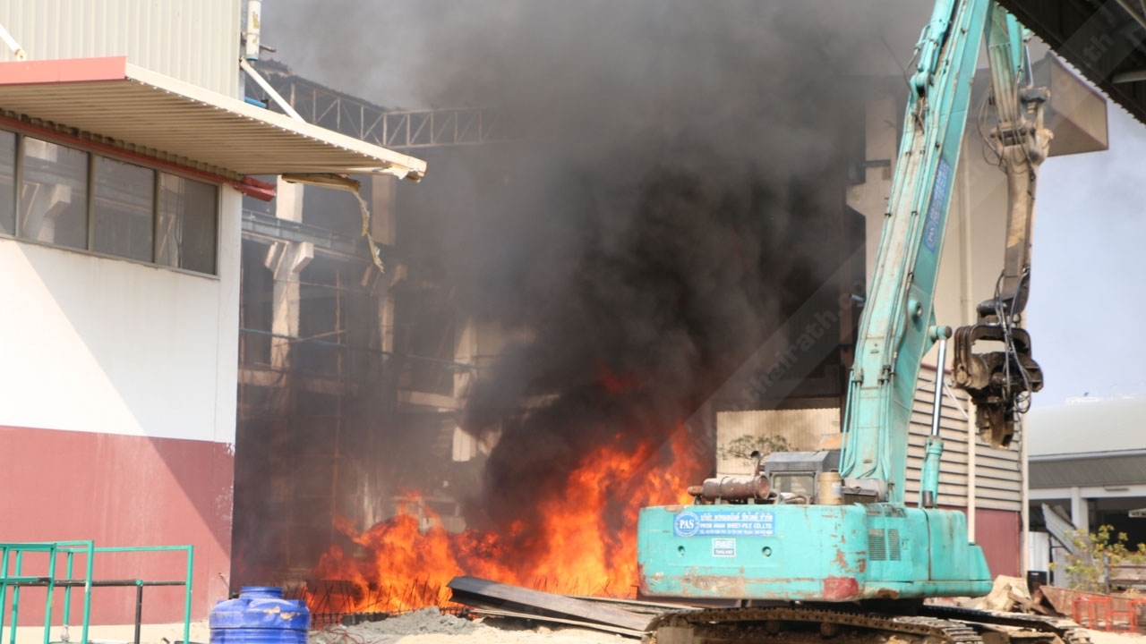 ที่เกิดเหตุ พบไฟกำลังไหม้บริเวณโรงงานด้านข้าง ซึ่งกำลังมีการก่อสร้างเชื่อมเหล็กวางเครื่องจักรตัวใหม่ เจ้าหน้าที่ใช้เวลาระงับเหตุประมาณครึ่งชั่วโมง เพลิงจึงสงบลง