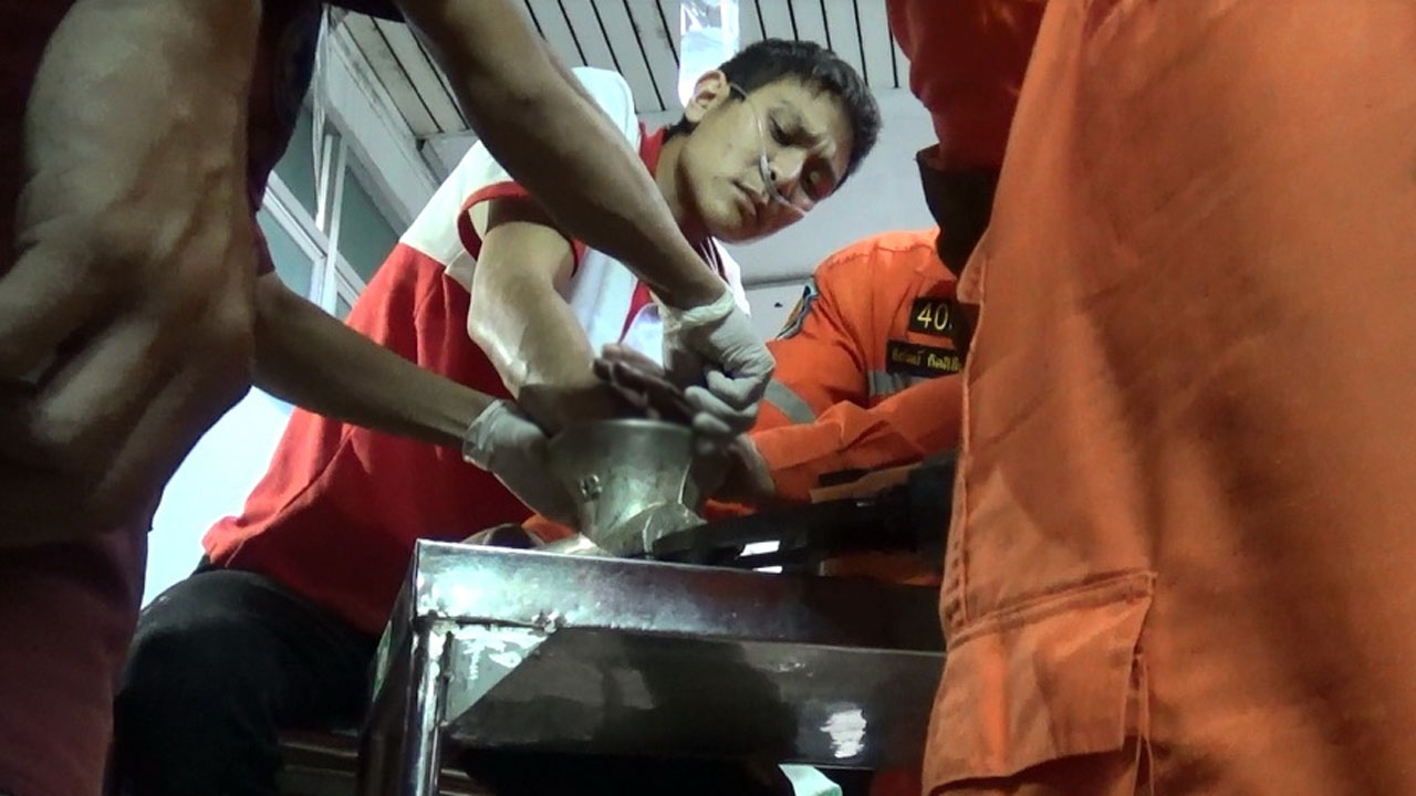 ที่เกิดเหตุ พบ นายนพดล จะคือ อายุ 24 ปี อยู่บ้านเลขที่ 123 หมู่ 13 ต.แม่งาว อ.เมือง จ.เชียงราย มือขวาได้ถูกดูดเข้าในเครื่องบดเนื้อ เบื้องต้นเจ้าหน้าที่ไม่สามารถจะดึงมือของคนเจ็บออกมาได้ เนื่องจากถูกเครื่องดูดเข้าไปจนถึงข้อมือ และคนไข้มีอาการเจ็บปวดทรมานมาก ทางทีมแพทย์ฉุกเฉินจึงให้น้ำเกลือและยาแก้ปวด ก่อนที่จะยกเอาเครื่องบดเนื้อหมูมาพร้อมกับคนเจ็บ ส่งมารักษาต่อที่ รพ.มหาราชนครเชียงใหม่ ทันที พร้อมกับแจ้งประสานเจ้าหน้าที่กู้ภัยนำเครื่องมือมาช่วยตัดเครื่องบดหมู เพื่อดึงมือคนเจ็บออกมา เจ้าหน้าที่กู้ภัยได้ใช้เครื่องตัดไฟเบอร์มาตัดเครื่องบดหมูใช้เวลาร่วมครึ่ง ชม. จึงสามารถช่วยเหลือ ดึงเอามือคนเจ็บออกมาได้